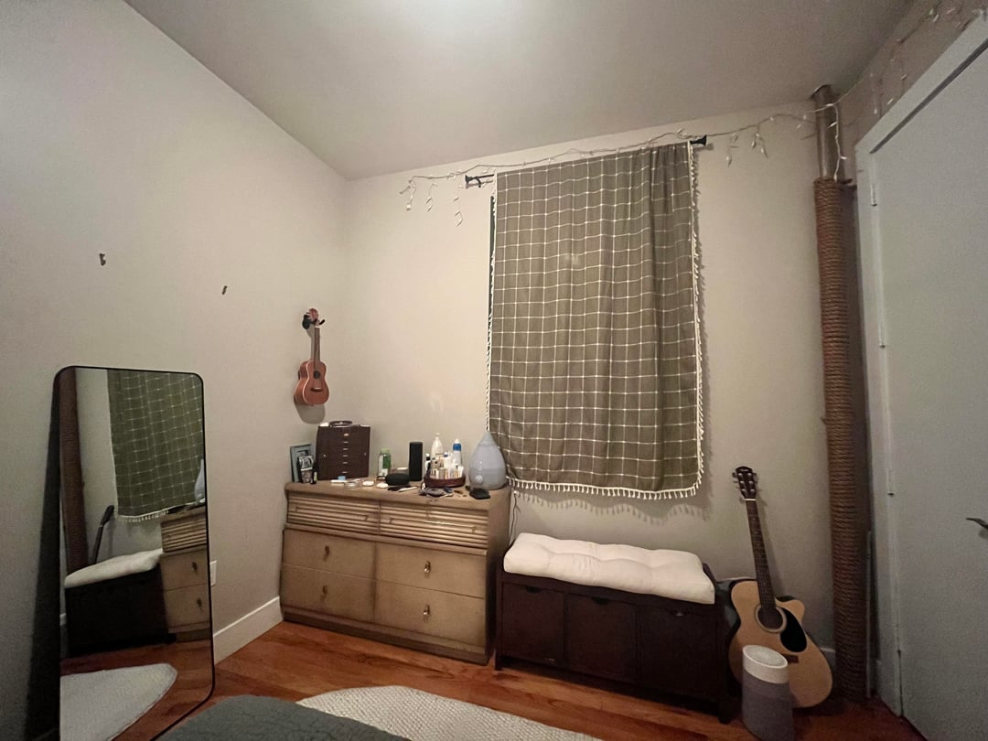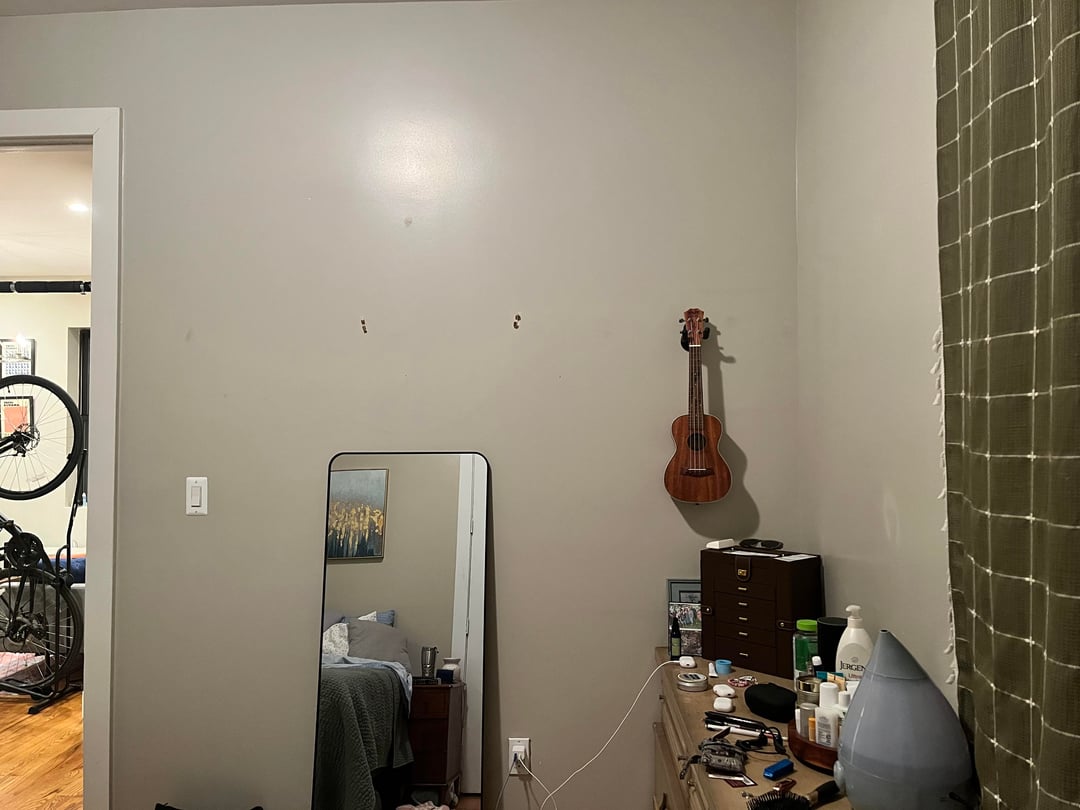 I plan to hang the guitar and mirror. But I’m considering how the guitar would then be near a heat pipe and I don’t think that’s the best in the winter. But maybe I’d take it down in the winter then.