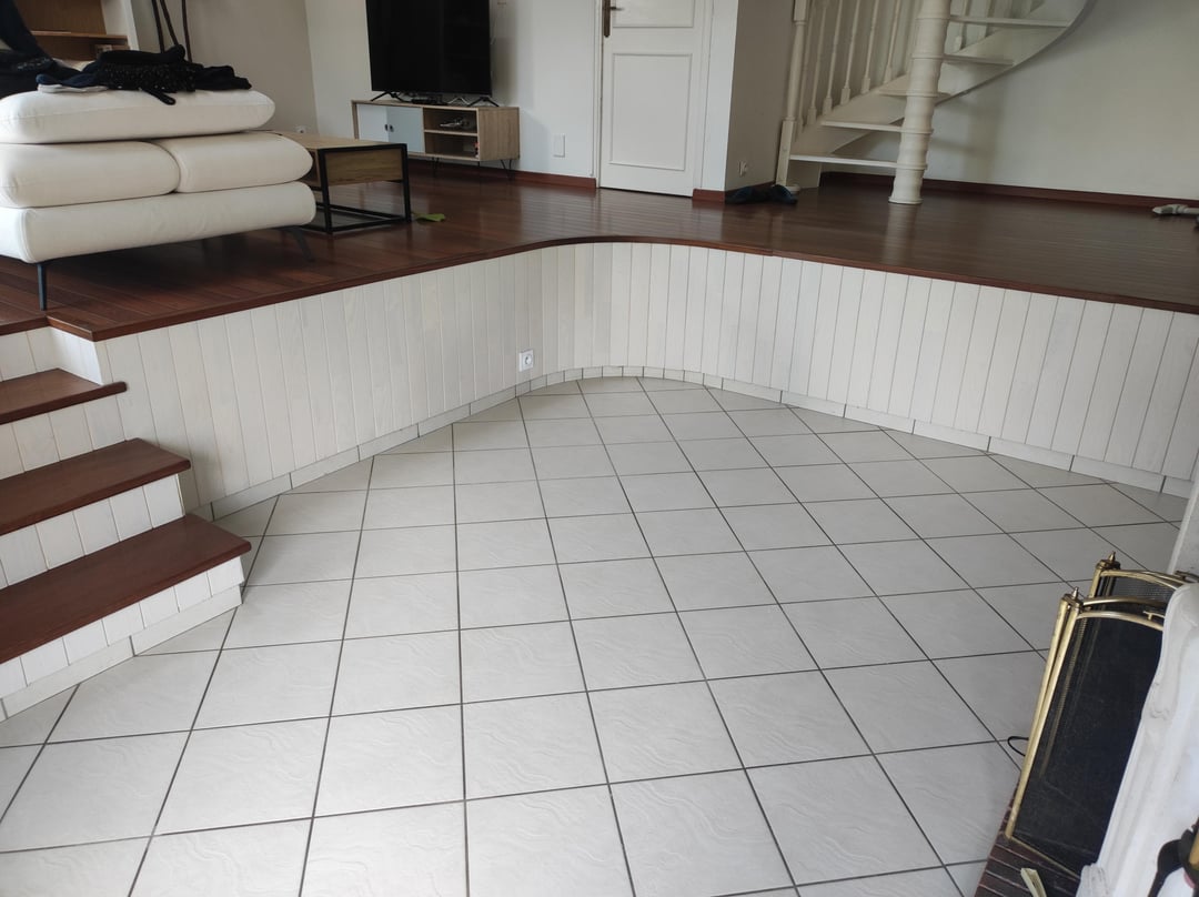 Thought about some sort of bench that fits in the corner and maybe a wall that goes above the sofa ?