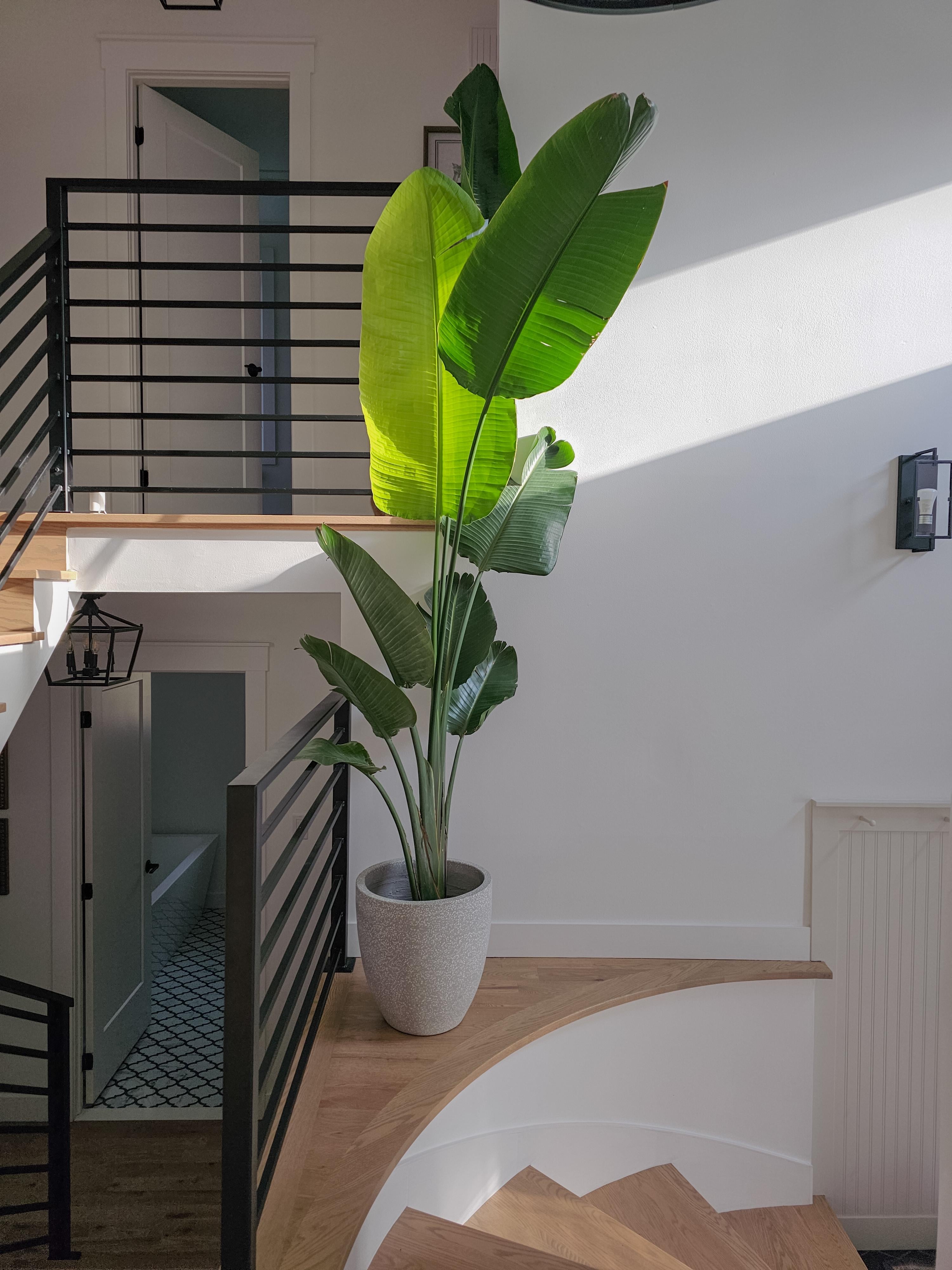 This little nook in my entrance was calling for a plant. I bought it when it had those 4 bottom leaves, and it's grown so much since. Definitely makes a statement 😅 ​​​