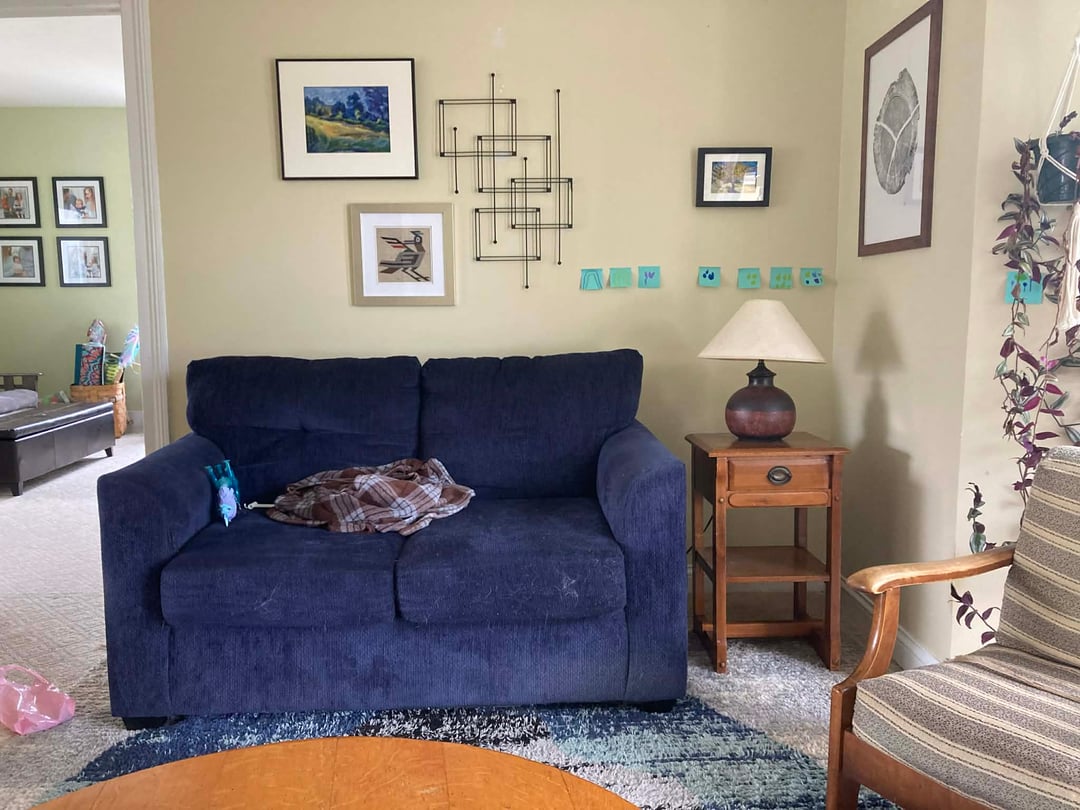 I’m playing around with one of my living room walls and something feels a little off to me. I’m struggling to figure out what! The third photo is the before.