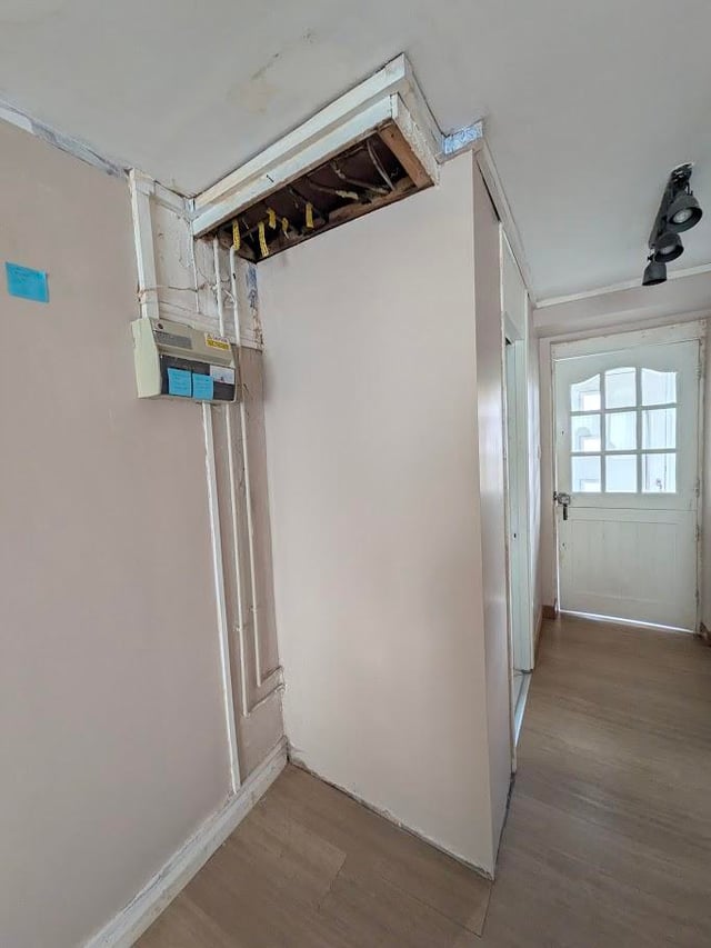 We have this really unsightly exposed piping and fusebox in one corner of our flat.