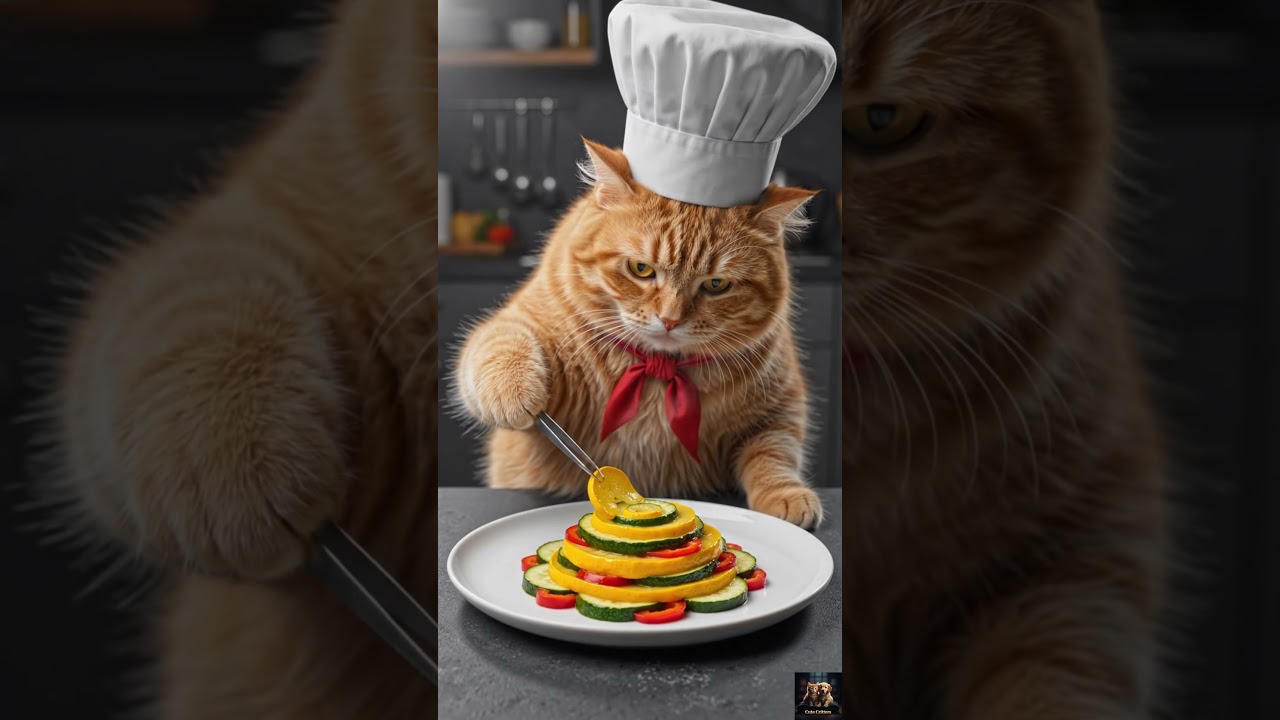 Welcome to the most sophisticated kitchen in town where culinary magic happens. Meet Chef Gung, our favorite fat and fluffy orange feline who is taking the culinary world by storm with his incredible cooking skills. In today’s episode, this talented cat funny sensation prepares a professional Ratatouille that would make even the toughest critics swoon 👨🍳.