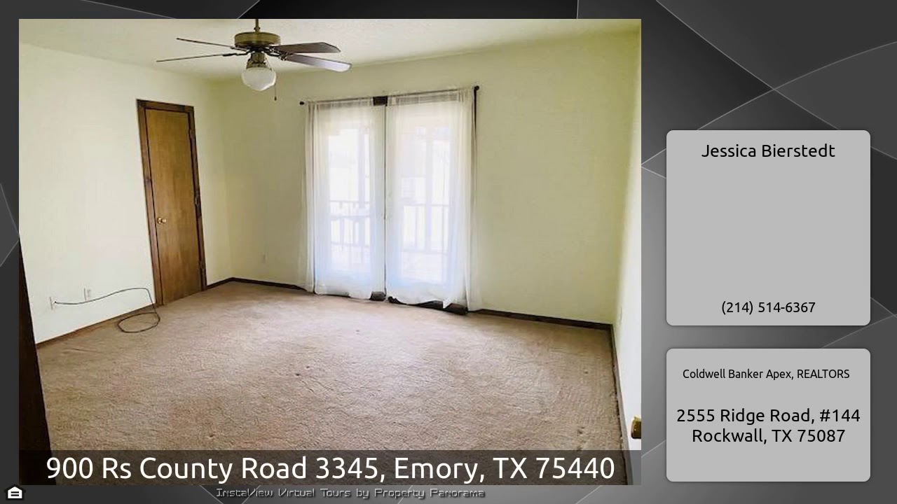 The Virtual Tour for the property at 900 Rs County Road 3345, Emory, TX 75440 listed for $224,900: Other homes for sale by Jessica Bierstedt of Coldwell Banker Apex, REALTORS: 2 Bedroom, 2 Bath home on 6.65 beautifully treed acres with a pond & workshop. Walk up to a large covered front porch for entertaining or morning coffee. Open floor plan, Large living with fireplace, Kitchen with custom cabinets, room off kitchen can be dining room or used as an office. master bedroom with french doors off to covered porch, walk in closet, tub shower combo. Screened in covered back porch. Workshop …