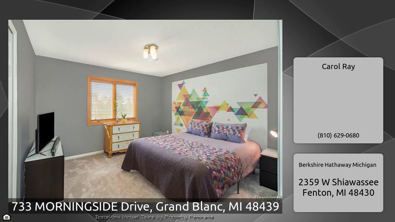 The Virtual Tour for the property at 733 MORNINGSIDE Drive, Grand Blanc, MI 48439 listed for $289,900: Other homes for sale by Carol Ray of Berkshire Hathaway Michigan: Welcome Home to 733 Morningside Drive . . . Perfect Open Design offering 4 bedrooms, 2.1 baths. Spacious Firelit Great Room w/French Doors leading to a large Home Office or Den. Kitchen features Work island, Sunny Breakfast Noon plus Bay Window w/French Doors leading to oversized Patio with Gazebo. Warm Hardwood Floors on the Main Level, Formal Dining Room and large 1st Floor Laundry. Professionally Finished Lower Level …