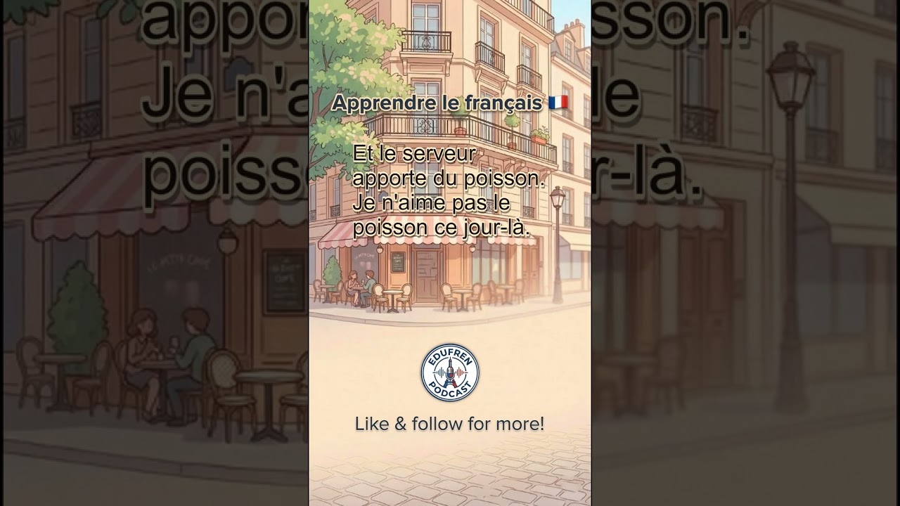 Learn essential French for ordering food & sharing funny stories! Perfect for beginners (A1). #French #LearnFrench #FrenchForBeginners #A1 #FrenchLesson #RestaurantFrench #Shorts 🎧 Full episode: https://www.youtube.com/watch?v=0QvCpkdf_Vo CuisineDiningfailsfood in FrenchFranceFrenchFrench A1french cuisineFrench diningFrench for beginnersfrench lessonFrench shortfrench vocabularyfunnylearn frenchrestaurantrestaurant frenchShortsspeak frenchVideoVlogYouTube 1 Comment @Edufren-r3v 4 weeks ago 🎧 Want to hear the full conversation? Watch the complete episode here 👉 https://www.youtube.com/watch?v=0QvCpkdf_VoWrite A CommentYou must be logged in to post a comment.