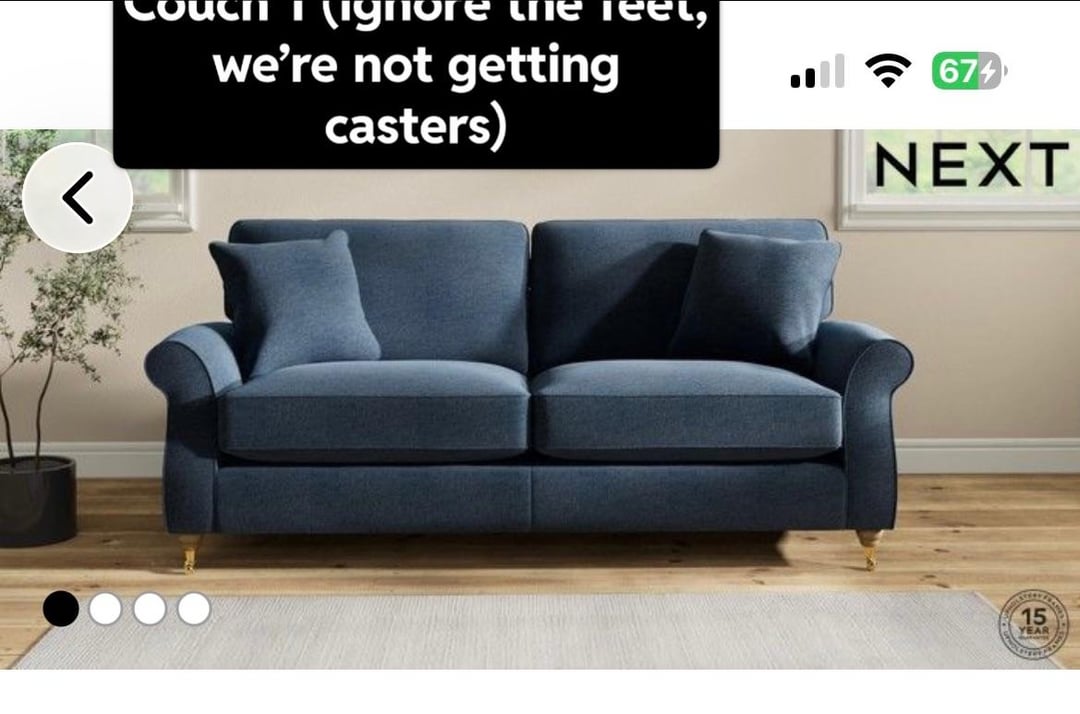 We’re redoing our living room and have painfully narrowed down our new couch options to two contenders – both blue, but slightly different shades.