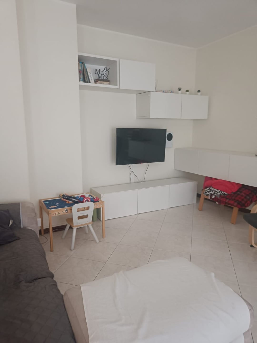 - Light-colored tile floors (a bit dated)