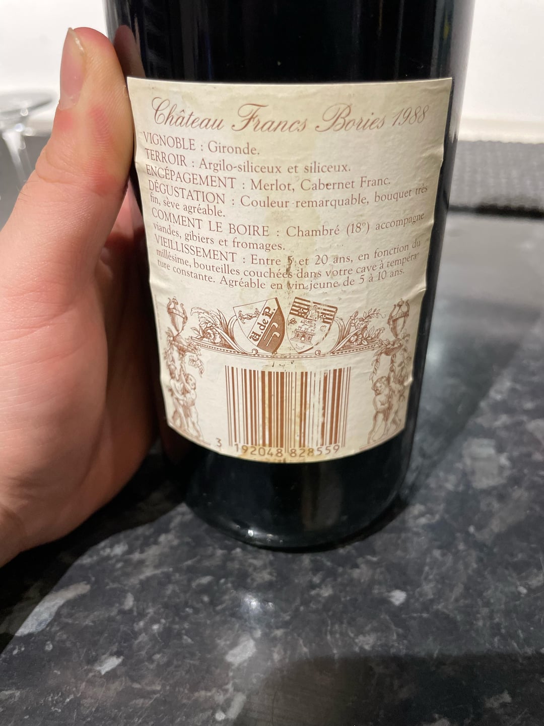 St Emilion is from Bordeaux and Château Franc Bories is a rather affordable one, so chances for this being still enjoyable are low. Give it a try anyway.