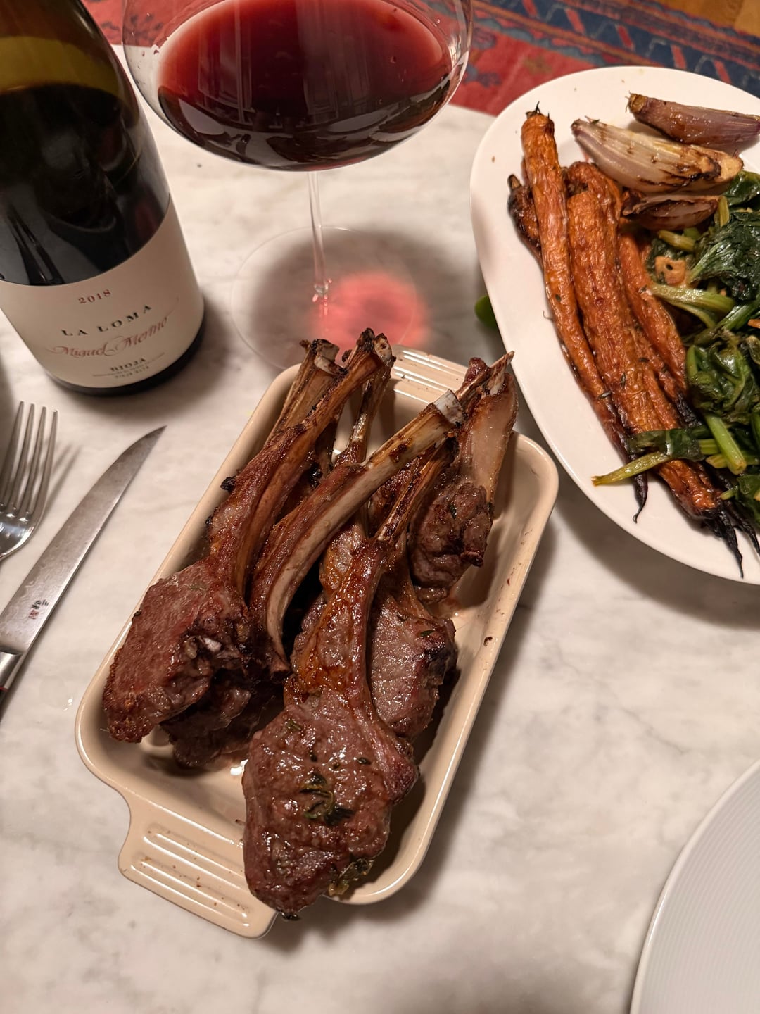 Though not a baby anymore it’s still very fresh at 8 years old with a obviously long runway ahead. Though it’s at a totally enjoyable spot now. Deep ruby color. About an hour breathing, paired with broiled lamb chops and roast veggies. Lamb and Rioja is a match made in heaven. This is a fine and elevated take on a classic.