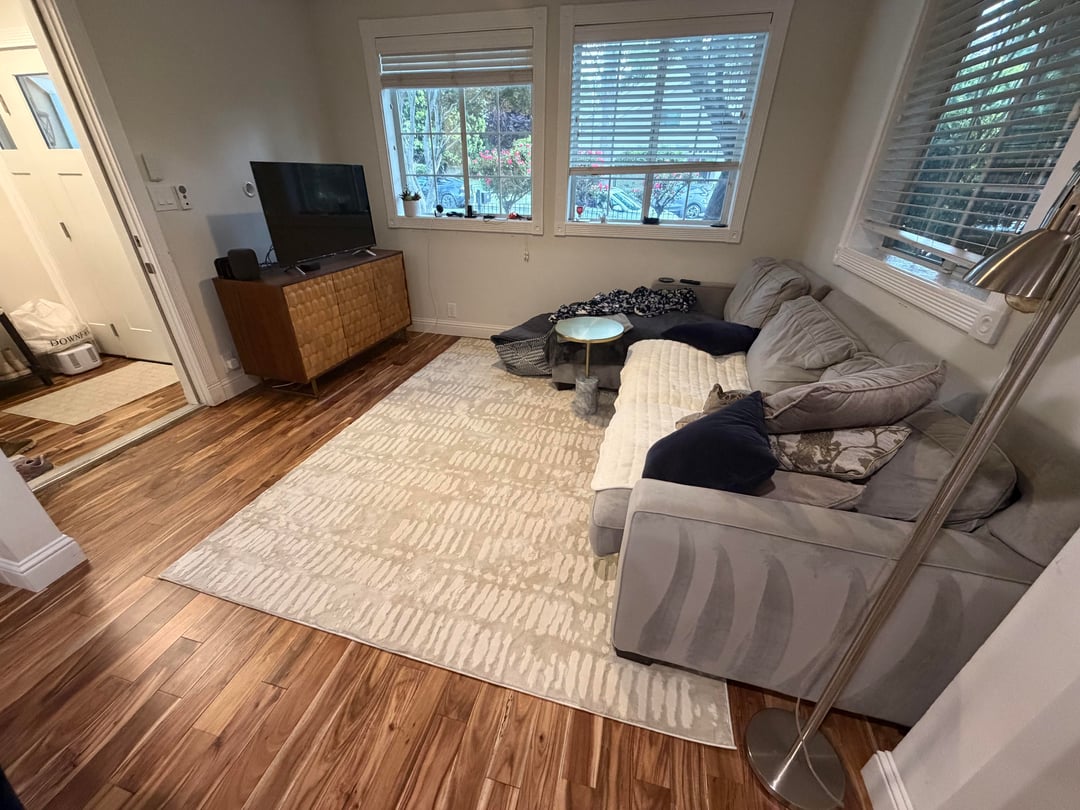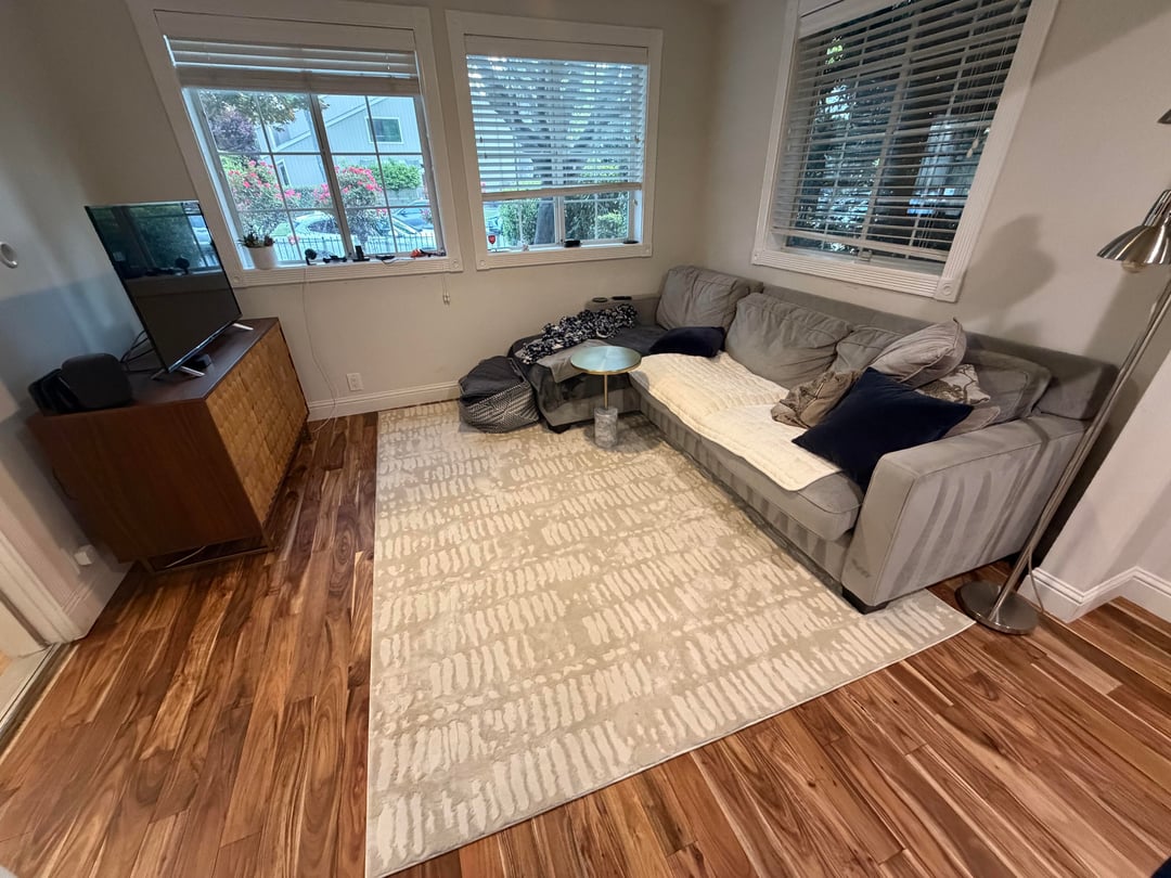 So I bought a new rug, hoping to make everything feel cozy, but the color and size just feels so wrong and is bugging me. I know I can use this rug in another room perfectly, so I’m on the hut for something that fits better.