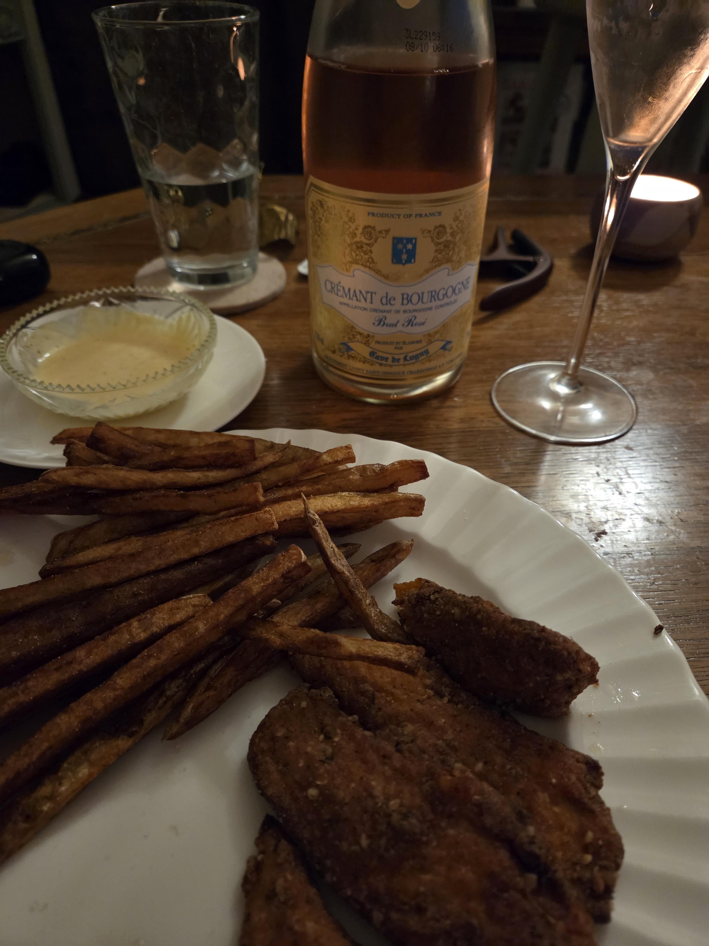 Probably not an exciting bottle to hear notes about and I am no expert. Enjoyed the hell out of this as an affordable champagene adjacent fix, to go with a guilty pleasure meal (homemade chicken fingers and freshcut fries.)