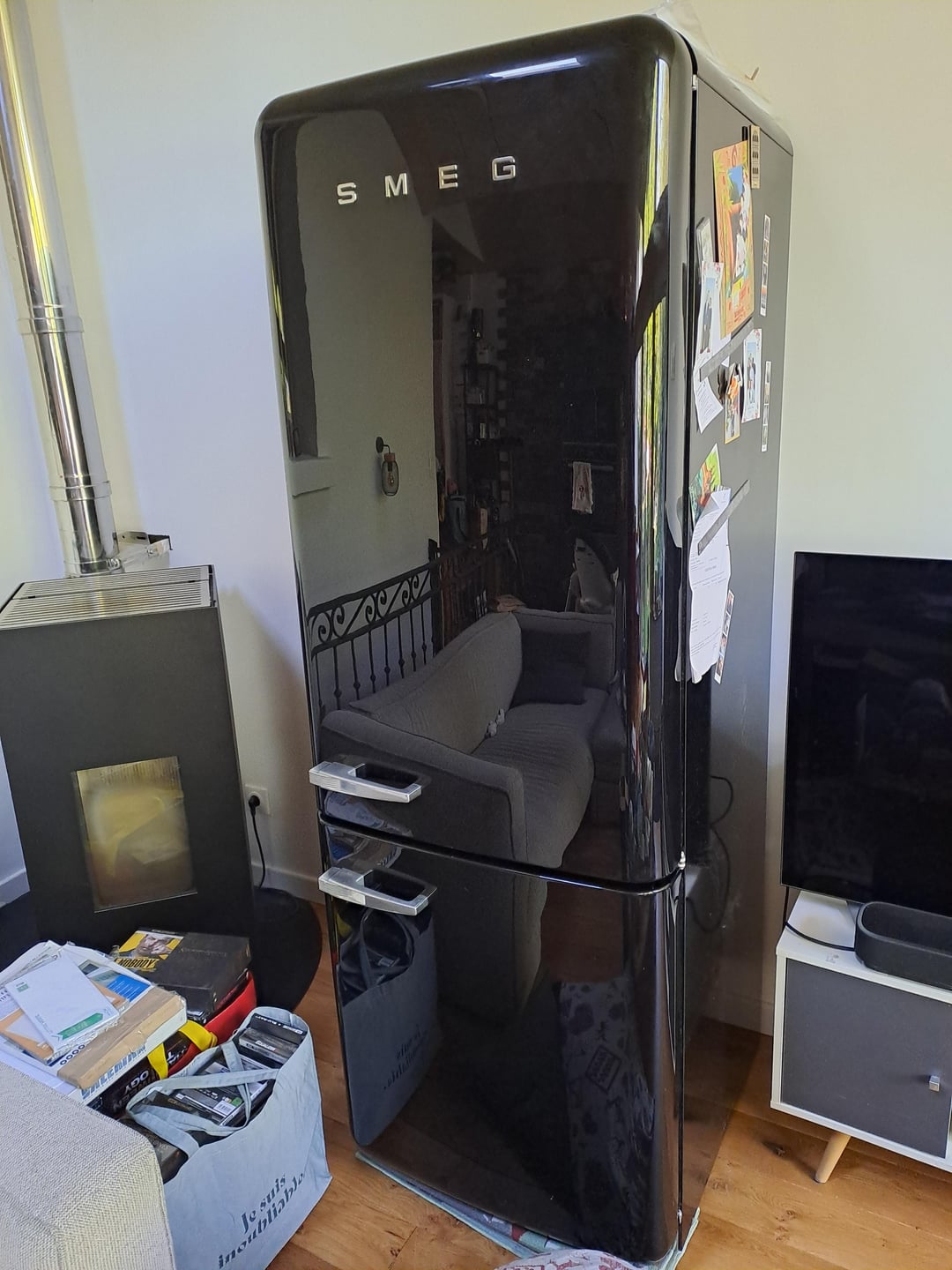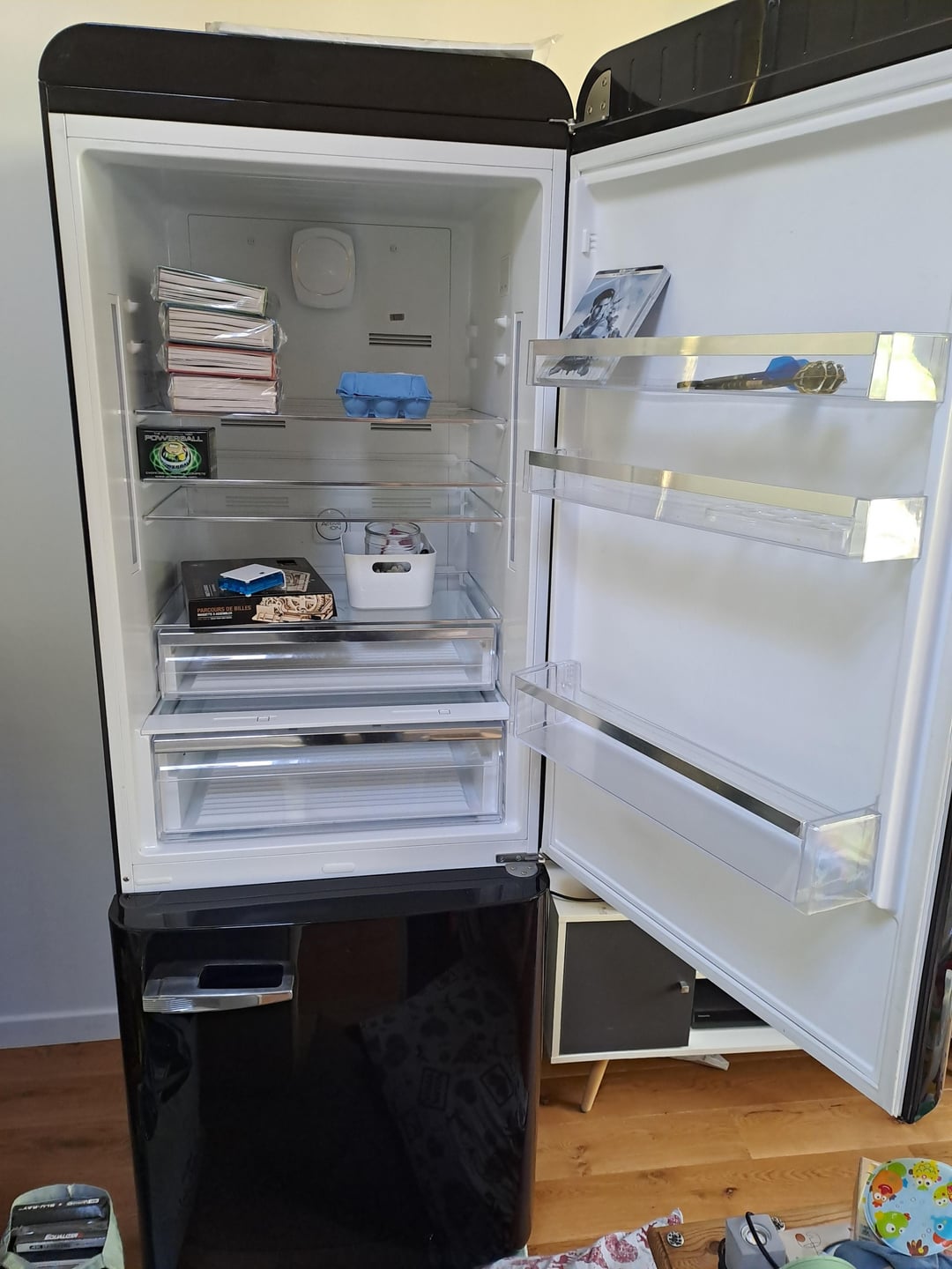 We have a big Smeg FAB38 which is not working anymore. I Wonder if I should keep it for storing things. My first idea was to store steelbook movies next to the TV with adding Led and candies on the bottom etc or next to the desk instead of white one which is broken. Sorry it's a mess at home 🙂