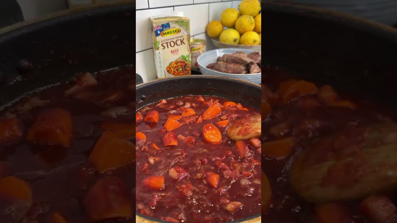 Warm up this winter with Massel Stock & Bouillon 👏🏼 Recipe: serves 6 Prep time: 20 mins Cook time: 6-8 hours 2 tbsp Oil 1kg Chuck Beef, cut into pieces 200g Bacon, diced 1 Large Brown Onion, diced 3 Carrots, roughly chopped 2 tbsp Tomato Paste 1 tbsp Garlic, minced 2 tbsp Plain Flour 750ml Red Wine (Shiraz or Pinot noir) 1 cup Boiling Water 1 tbsp Massel Foods Beef Style Stock Powder 200g Button Mushrooms, whole Approx 10 French Shallot onions, whole 3 Bay Leaves, dried or fresh 4 sprigs Fresh Thyme Fresh parsley to garnish Serve with Mashed Potatoes, rice or crusty bread! METHOD 1. Heat oil in hot pan and add the beef pieces. Once the meat is nicely browned, transfer to a bowl. 2. Add Bacon into the pan, cook for 2 minutes and then add the onions and carrots. 3. Once onions are slightly softened, add tomato paste and garlic. Cook for a further 2 minutes. 4.Stir in flour and combine, add in red wine and allow to come to a simmer. 5. Transfer beef and the red wine sauce into your slow cooker. 6. Combine Massel Foods Beef Style Stock powder with hot water and add into slow cooker along with the button mushrooms and shallot onions. Add the thyme and bay leaves and mix well. 7. Cook on LOW for 7-8 hours or on HIGH for 6-7 hours. You want to cook until the beef is soft and tender. 8.Top with fresh chopped parsley and serve with mashed potatoes, if desired. #Masseltastesbetter #Food #Recipe #ad #stew #easydinner #recipesforyou