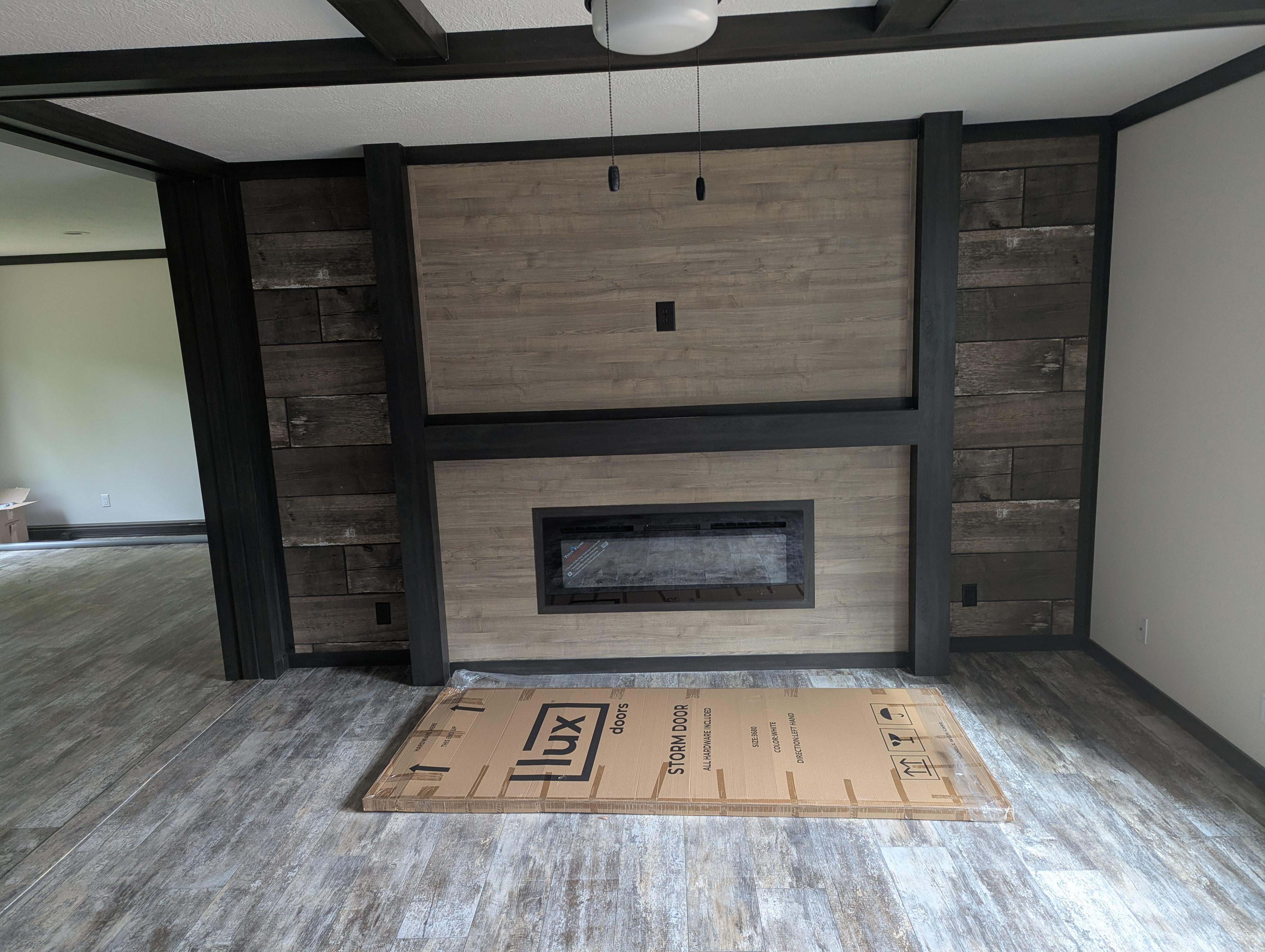I'm a first-time homeowner and my house came with this built in electric fireplace, but it kinda gets in the way of a standard entertainment center. Should I put a shelf on the beam? I've seen some floating entertainment centers on Amazon too. Just need something for my Roku/Xbox. What do y'all think?