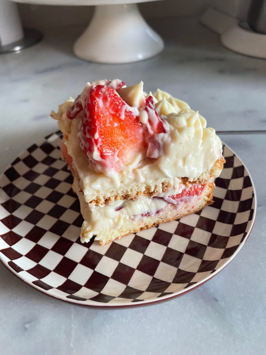 La semaine derniere j'ai fait du flanc, alors il me restait des blancs d'oeuf, du lait entier et de la creme, tout ce qu'il faut pour un fraisier du coup 😀