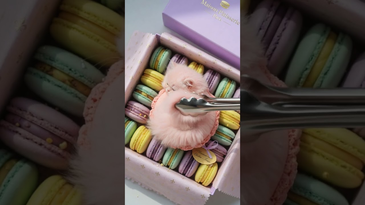 I bought a box of luxury macarons from a high-end French patisserie, but one of them started purring! 🍬 Welcome to the most magical and oddly satisfying dessert reveal on the internet. Watch this aesthetic pink-themed surreal transformation unfold. Is it an expensive gourmet cookie or the world’s fluffiest kitten?