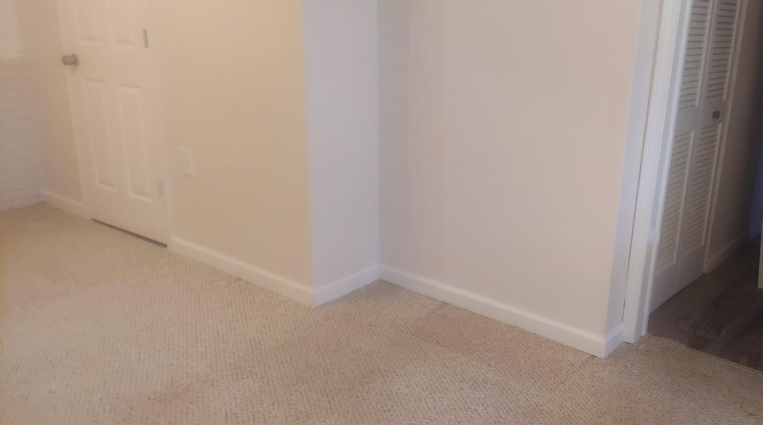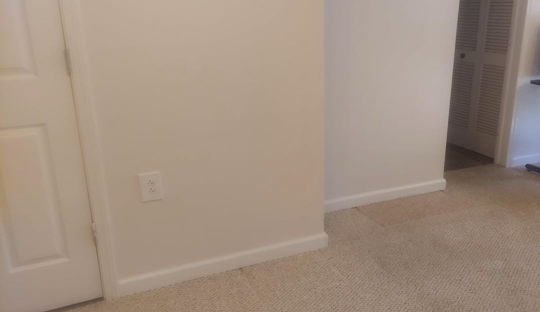 For a stepped wall like that, the shelf-behind-desk approach works really well if you treat the deeper section as a built-in backdrop rather than filler. L-shaped or corner desks are especially useful here since you can orient them to follow the step. IKEA’s ALEX drawers plus a custom tabletop let you match the width exactly to whatever the space allows. For the shelves, going floor-to-ceiling on the deeper part and matching the desk depth makes the whole thing read as intentional rather than patched together. What are the rough widths of each section?
