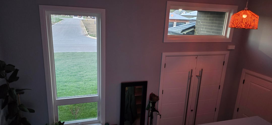 We have these 2 beautiful windows in the front of home. They are the only 2 front facing windows. I put zebra blinds in every other window I the house but left these bare. I think they are 2 beautiful to cover up. We're not really concerned about privacy. You can mostly just see the foyer and the ceiling from the road. I definitely don't like zebra blinds on windows this big.