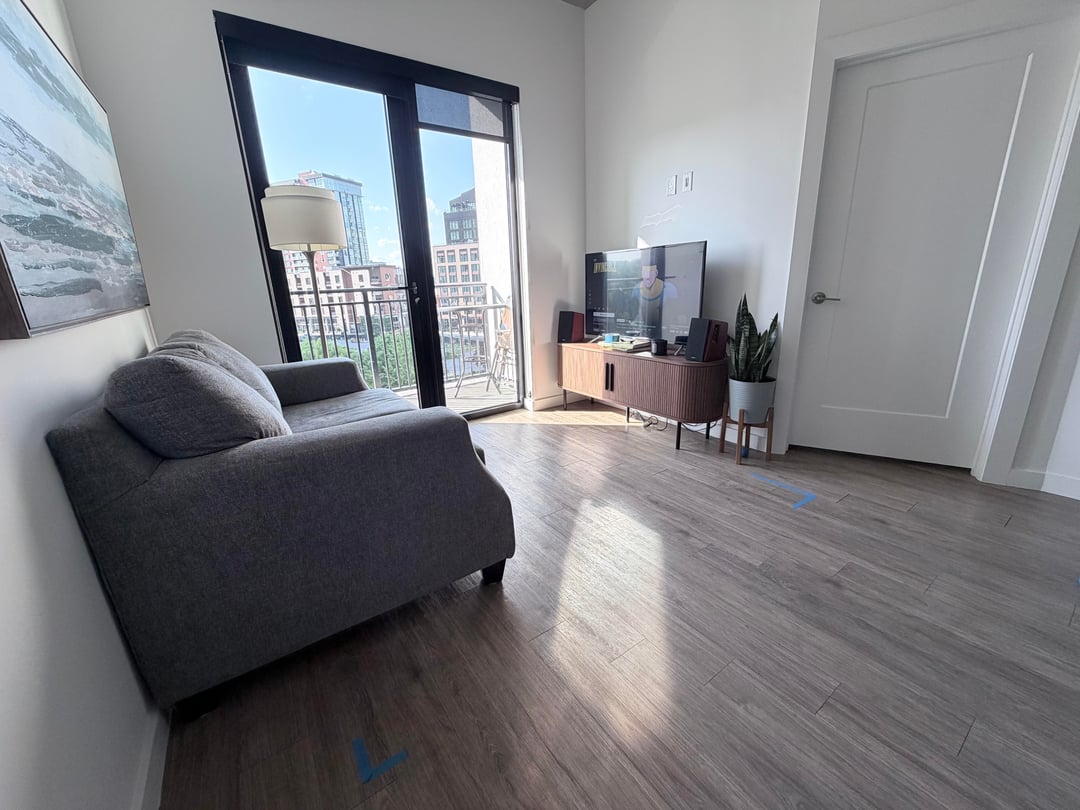 Moved into a new place and trying to figure out the right rug size for my small living room area. The tape outline on the floor is 7×7, but I’m worried it might be too big for the space and make the room feel cramped. Would love a second opinion from people with a better eye for this stuff.
