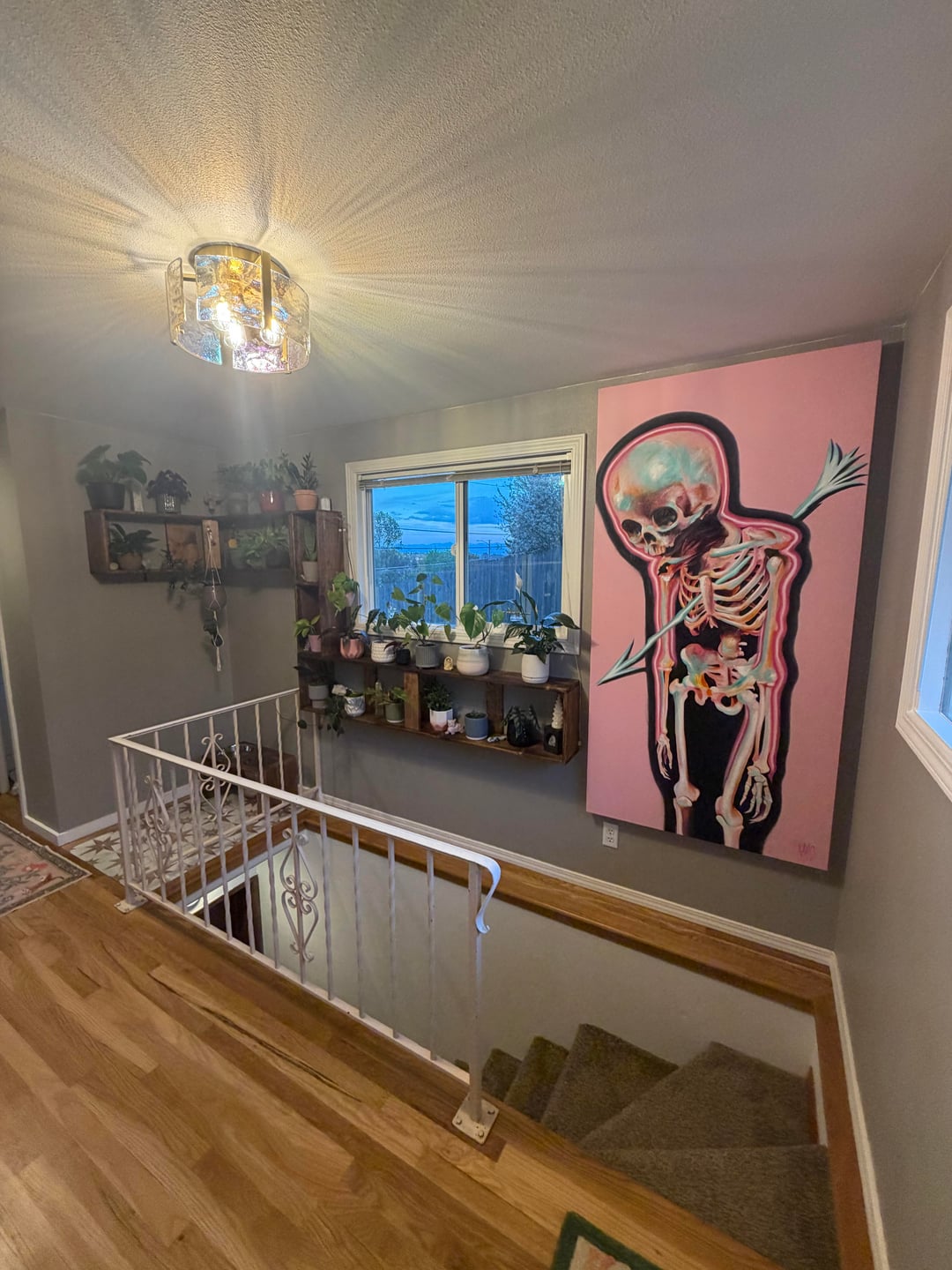 Love the plant area. The pink art with a spear in the skeleton is awful
