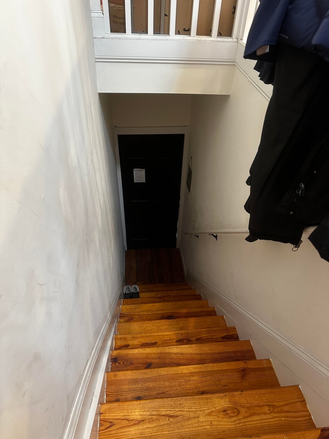 I love my apartment by every time I get home and have to walk up these stairs I get depressed. I have no idea what to do with the stair way walls! They are so white and boring and scratched up and dirty. Any ideas welcome 🙏 the third picture is of the top of the stairs