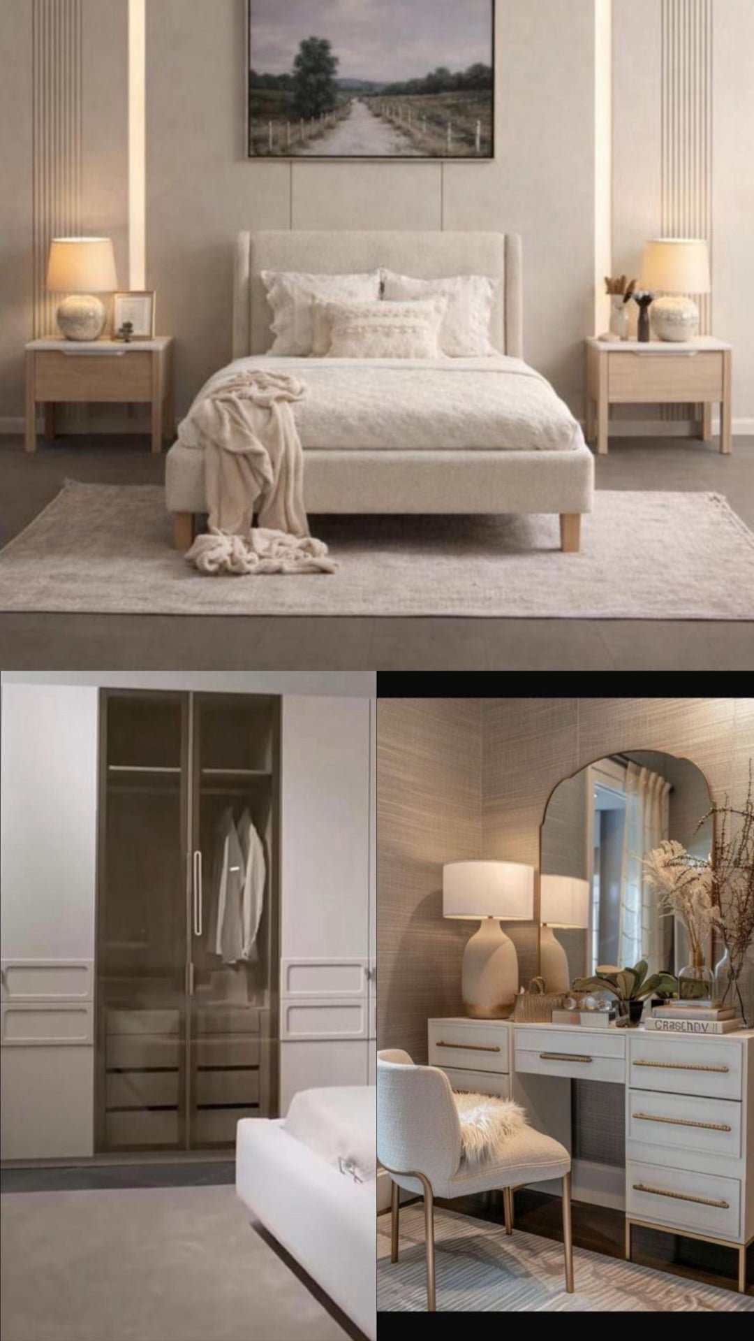 I was willing to go with this current wood wardrobe but they said it contracted with the rest of the bedroom and need to change colour to same cream colour which is not what I intended for the vanity. Now I am having second thoughts