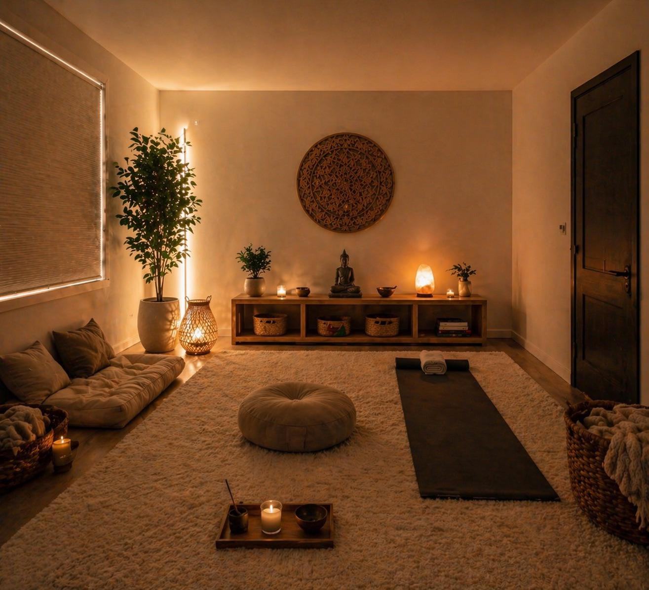 I think the space is cool, but for me an entire room dedicated only to meditation seems kind of excessive for daily living activities which might benefit from being more of a lounge with real seating/ also meditation areas.