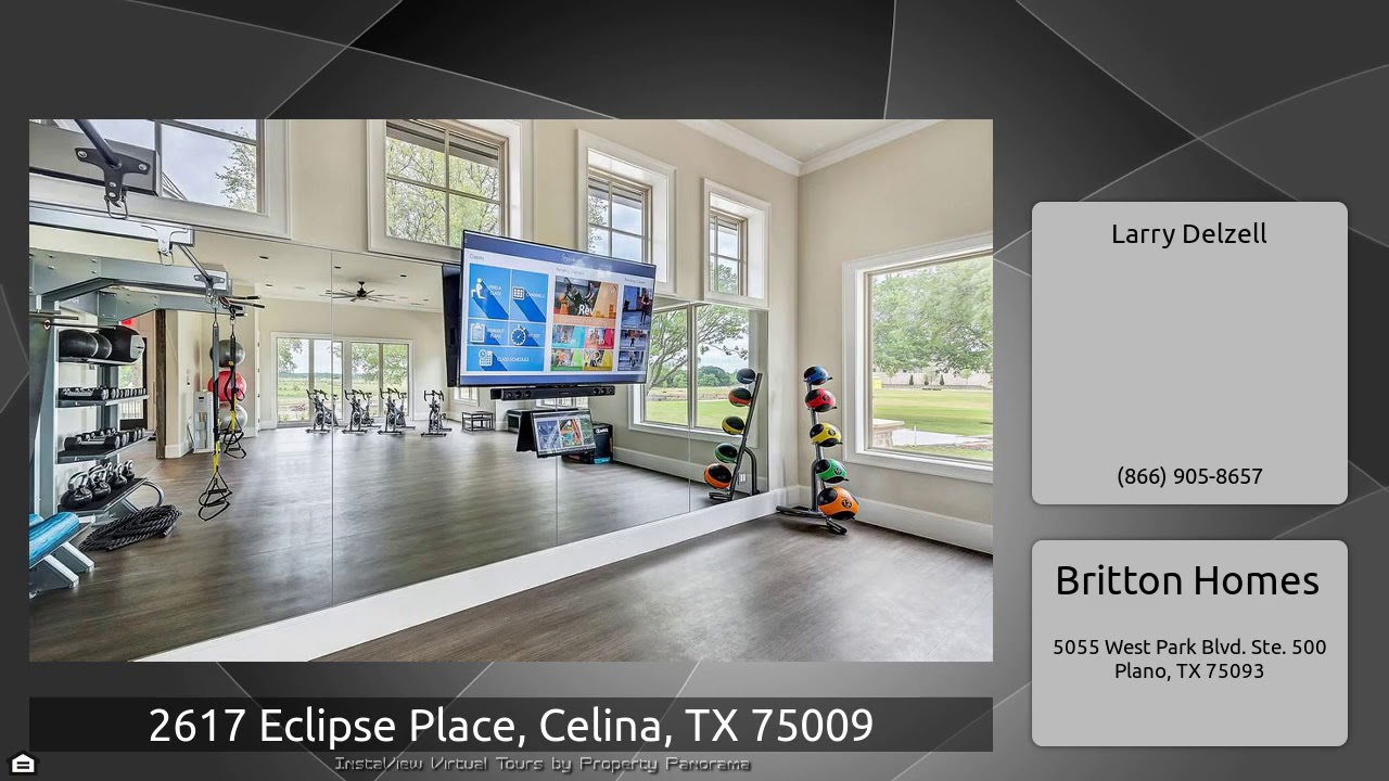 The Virtual Tour for the property at 2617 Eclipse Place, Celina, TX 75009 listed for $559,900: Other homes for sale by Larry Delzell of Britton Homes: BRITTON HOMES NEW CONSTRUCTION! Library with French doors set at entry. Media room with French doors off extended entry. Formal dining room opens to family room with wall of windows and wood mantel fireplace. Kitchen hosts generous island with built-in seating space, abundant counter space, double ovens and walk-in pantry. Adjoining morning area features wall of windows. Hardwood floors throughout. Master bedroom features hardwood floors and …