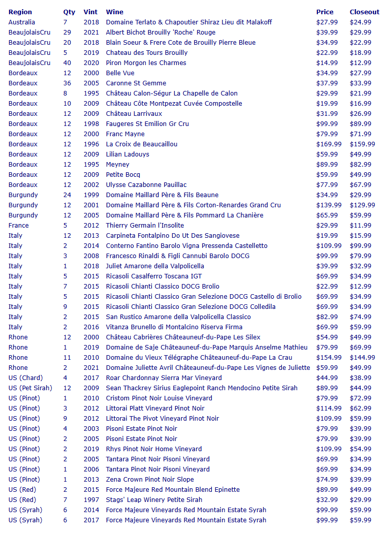 My local wine shop is doing a private cellar closeout sale, and I wanted to see if you all had any recommendations for bottles to grab!