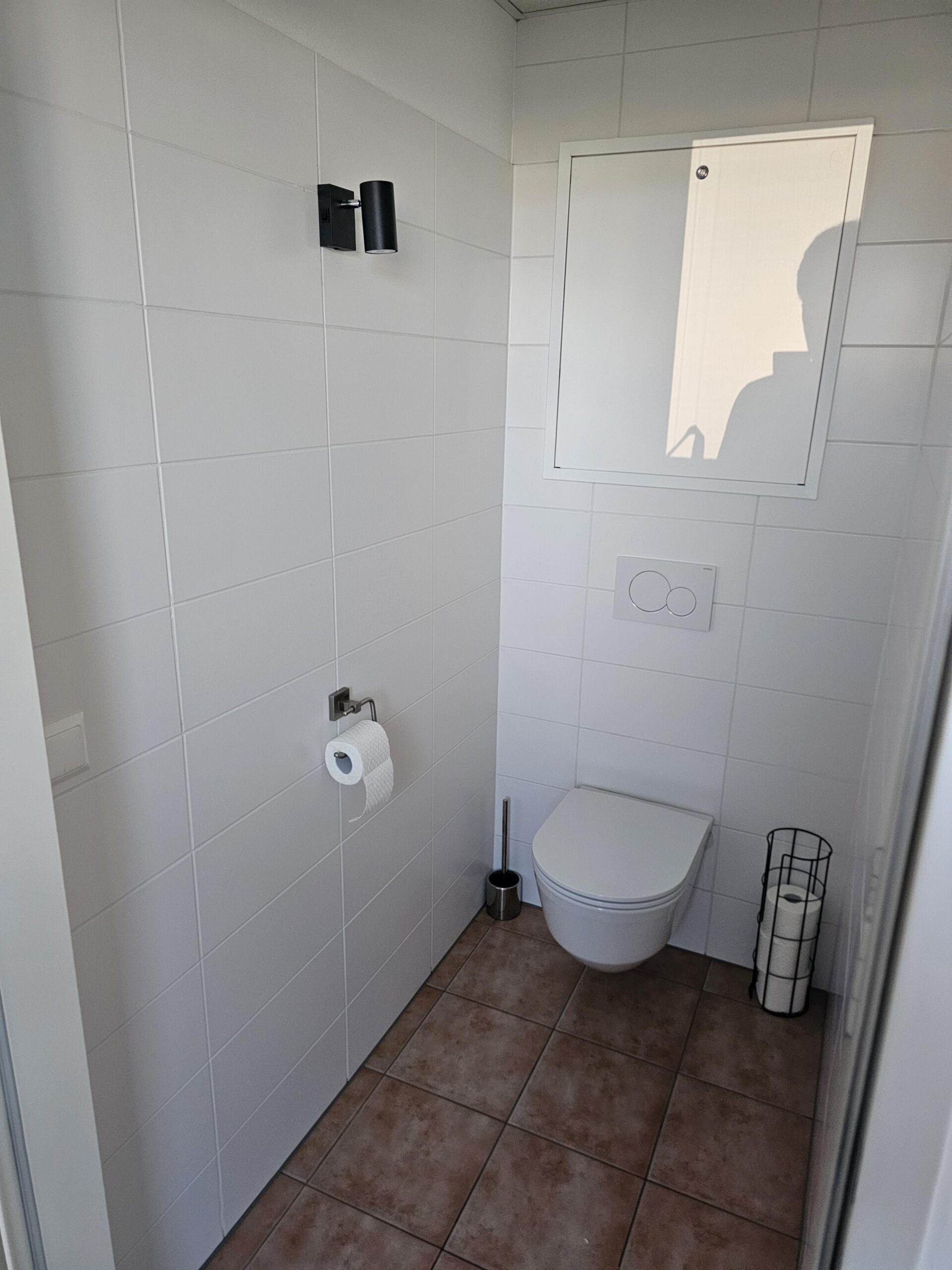 I am moving into a new appartment soon but I have no idea how I could improve this toilet. I was thinking about a carpet and prettier toiler paper holders, etc.
