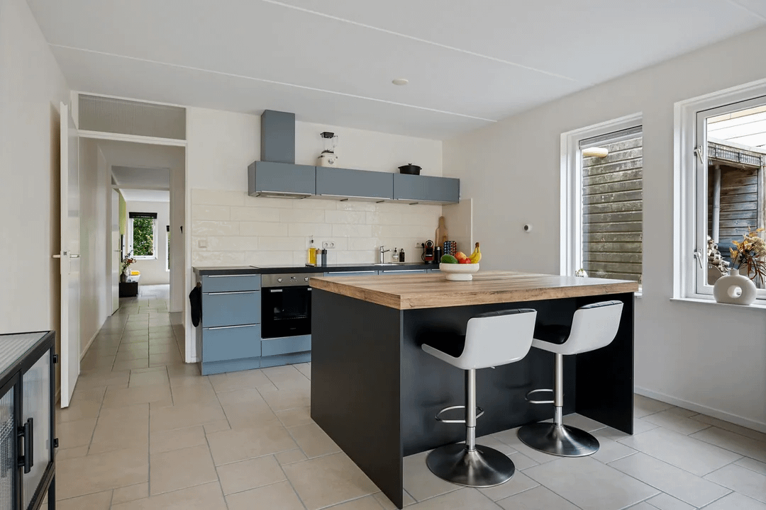 We love warm decoration and colors and are a bit stumped on how to make our kitchen/living room cozy. We want to avoid beige/grey and blacks as much as possible.