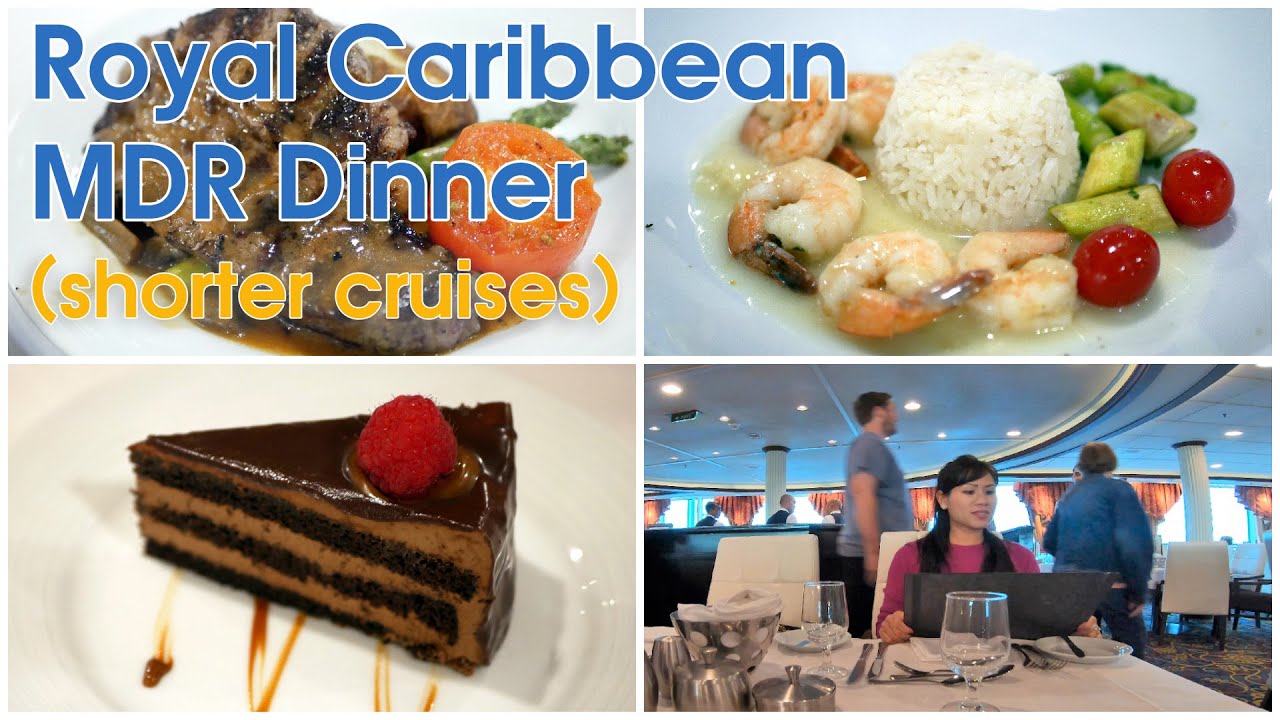 See what food Royal Caribbean dishes out at the main dining room (MDR) for dinner on shorter cruises on smaller ships. We also provided several sample menus, including a kid’s menu as well.