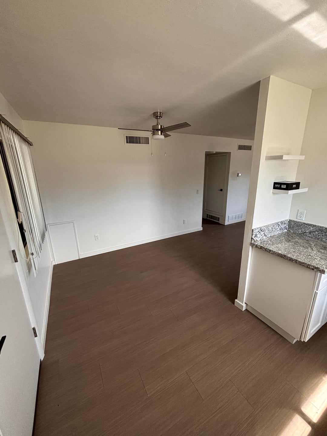 Do I put a rectangular table up against the wall to allow for more walking room? Or do I put a small circular table centered below the ceiling fan? I don’t need a large table since it’s just me.