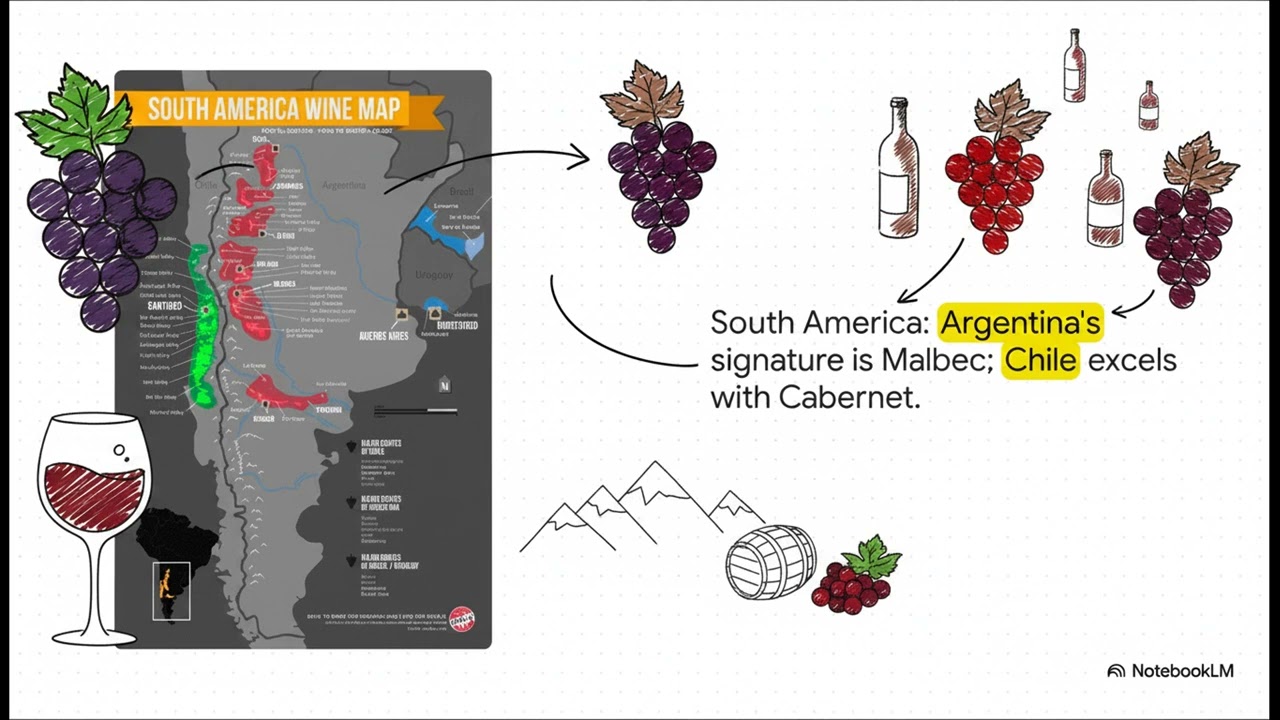 This source provides an overview of the global wine production industry, with a focus on geographic diversity and cultivation techniques in key regions. The content covers traditional producers such as France, Italy, and Greece, as well as increasingly influential newer producers like the United States, Australia, South Africa, and countries in South America.