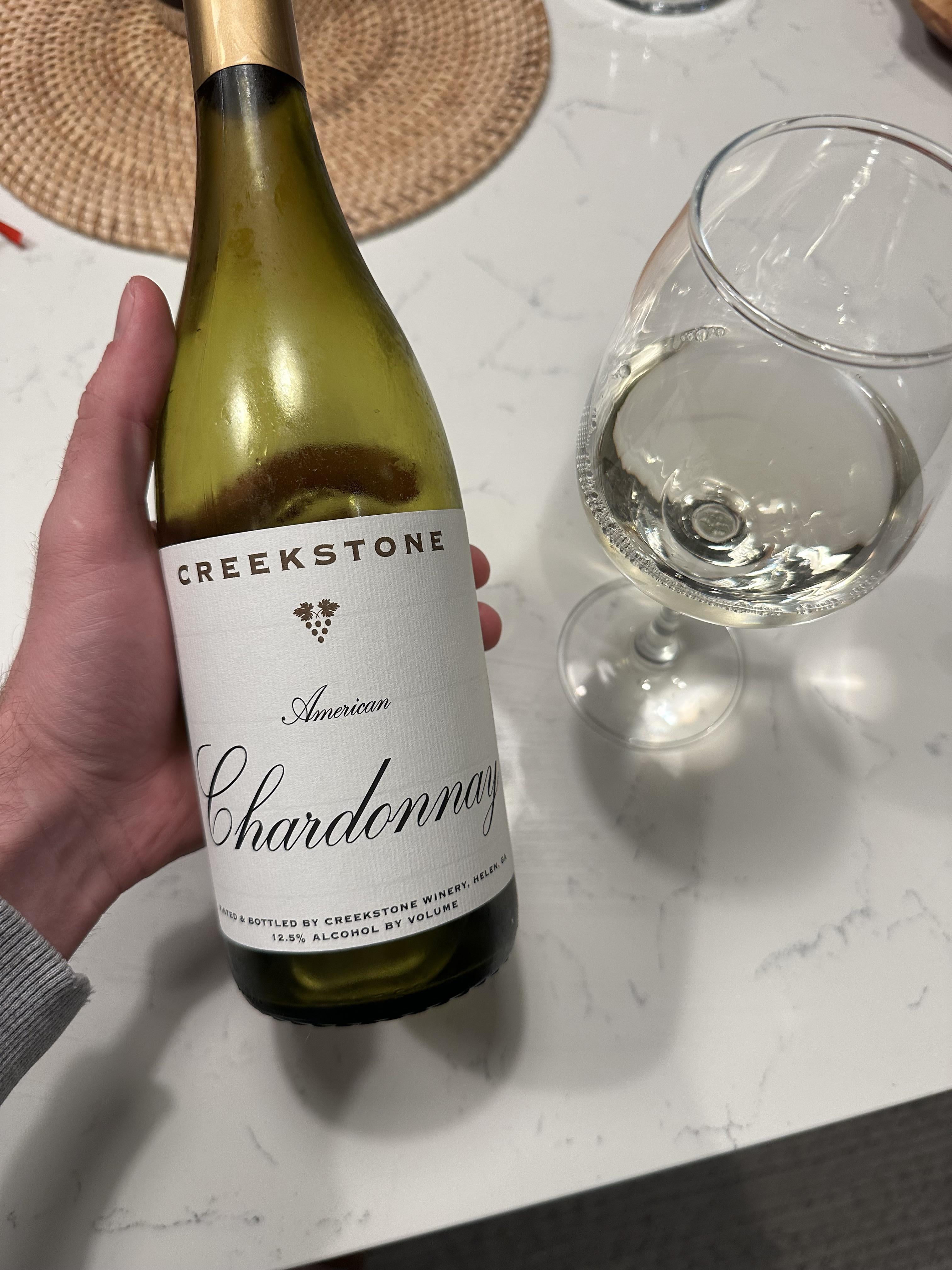 Poured this Chardonnay tonight from Creekstone winery in Helen, GA. I went wine tasting there a couple months ago and it’s a small winery on top of a hill overlooking some gorgeous Georgia views. Of all the wines I tasted, this was the one I took home. It’s very light, dry, and has notes of green apple and pear, and a little oak. It’s actually very refreshing. I’m cooking some Greek kebabs tonight and thought it would go well with it!