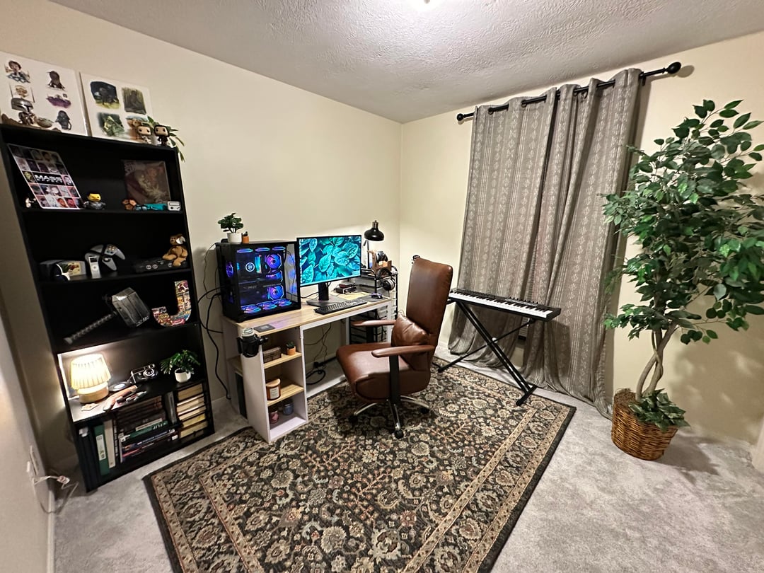 2. Gaming-oriented spaces usually work well with high contrast in my opinion. I have a full black/white setup with some blue accents, and the chair is white frame w/ black cushions/mesh. A lot of decently good ergonomic chairs can fit this vibe and also give you some really good back support