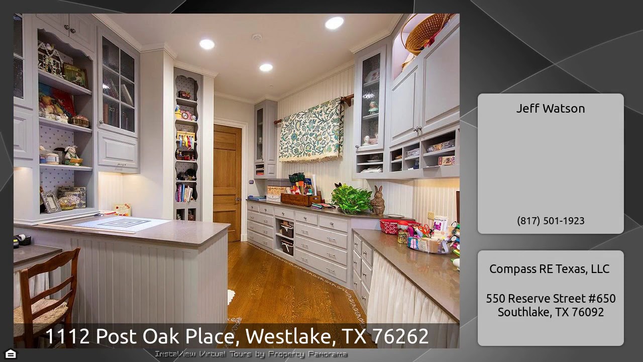 The Virtual Tour for the property at 1112 Post Oak Place, Westlake, TX 76262 listed for $4,500,000: Other homes for sale by Jeff Watson of Compass RE Texas, LLC: French Country Estate with Vaquero's best golf course & lake views! Authentic finishes throughout with White Oak floors, French Beaumanier limestone, antique marble & Italian tile. Exquisite custom handcrafted wood trim, beams, doors & staircases by Hull Historical. Spacious kitchen features Lacanche range & oven, Sub-Zero, Miele & Hoshizaki appliances & is centered around a built in family dining banquette with additional barstool …