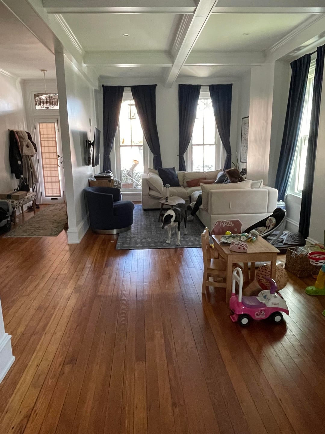 what to do with this space? it's our living/play/ dining room. struggling with open floor concept.