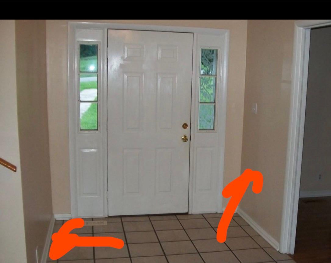 this is a horrible picture; once we move in i will be able to get measurements and better photos (we are buying one of my husband'a grandparent's properties), but what can i place in either (or both) of these spots? i thought about either a little bench or one of those entryway table things to set your keys on etc? i just don't know if it would feel too crowded? if you guys think so? then what do you think i should do? ❤️
