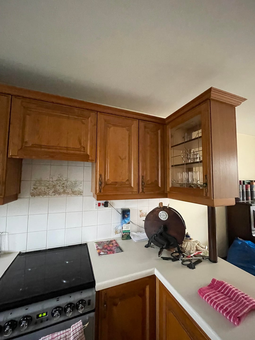 I find this kitchen pretty cute! Nice wood cupboards. I would focus on limiting clutter on the counters. For example, switching out the knife block for a magnetic wall rack. You can also put things like dish soap in a cute reusable bottle.