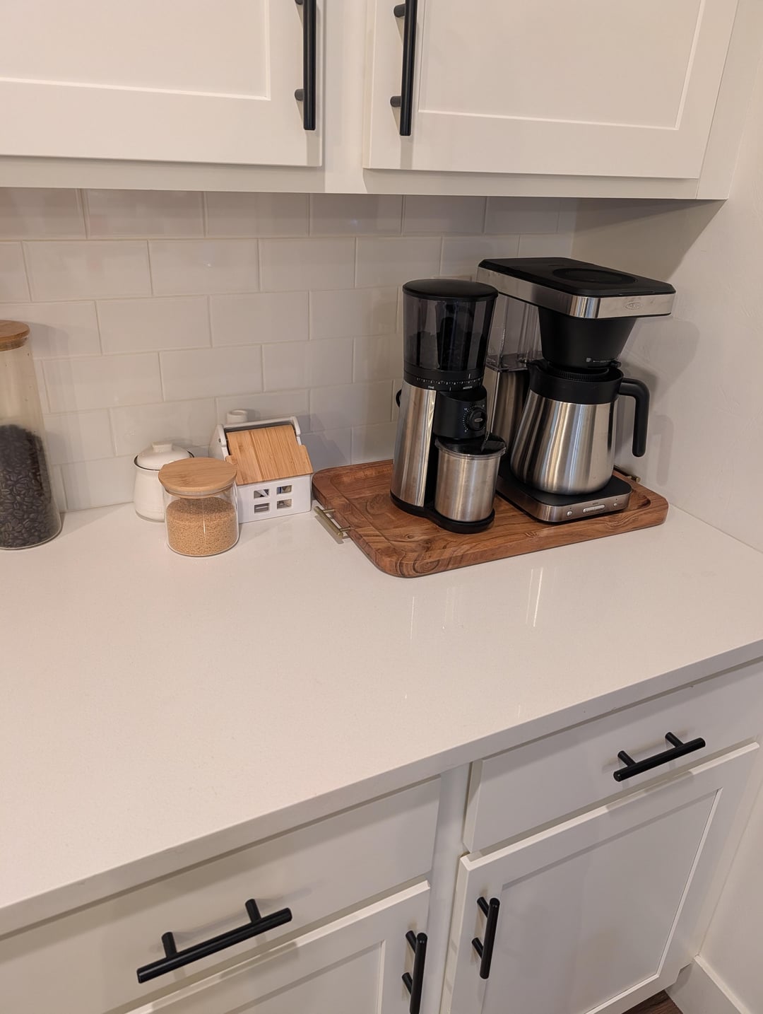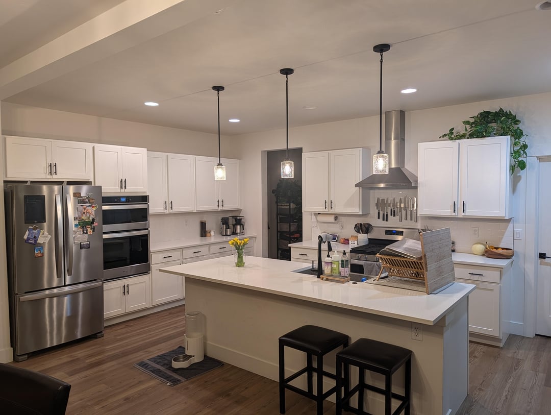 Personally I think you’re off to a great start. I would change out those bar chairs though. They are kind of boring and I think changing that out would change the overall look of your kitchen. Wood chairs would look better.