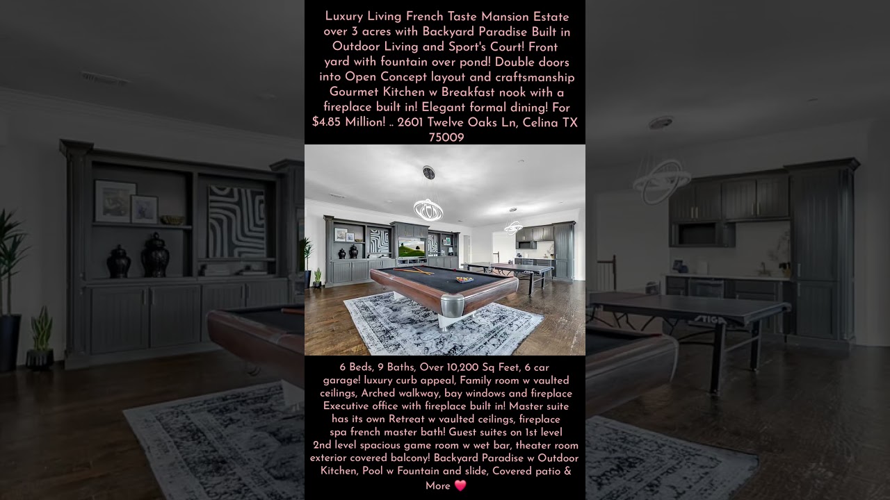 “LUXURIOUS LIVING FRENCH TASTE MANSION” Estate sitting on 3 acres with Backyard Paradise Built in, Outdoor Living, And Sports Court ! 🏰🏰🏠 Priced $4.85 Million! …. Located: 2601 Twelve Oaks Ln, Celina, TX, 75009