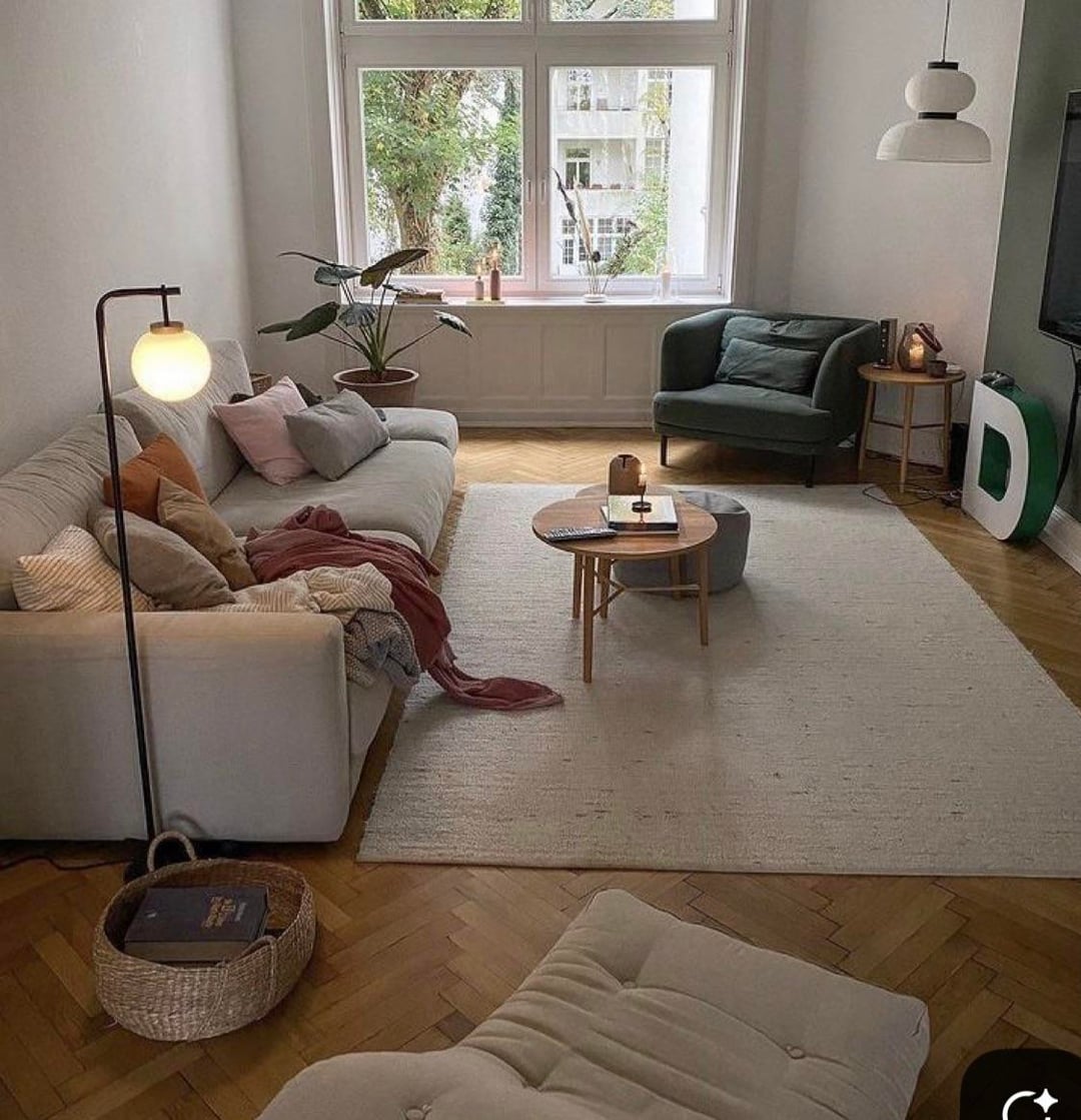1st picture is my current living room, 2nd and 3rd is the style Im going for (found on Pinterest). Just cant decide which color I should add etc. Maybe you have some ideas? I can not change the couch at the moment, eventhough im not 100% happy with it.