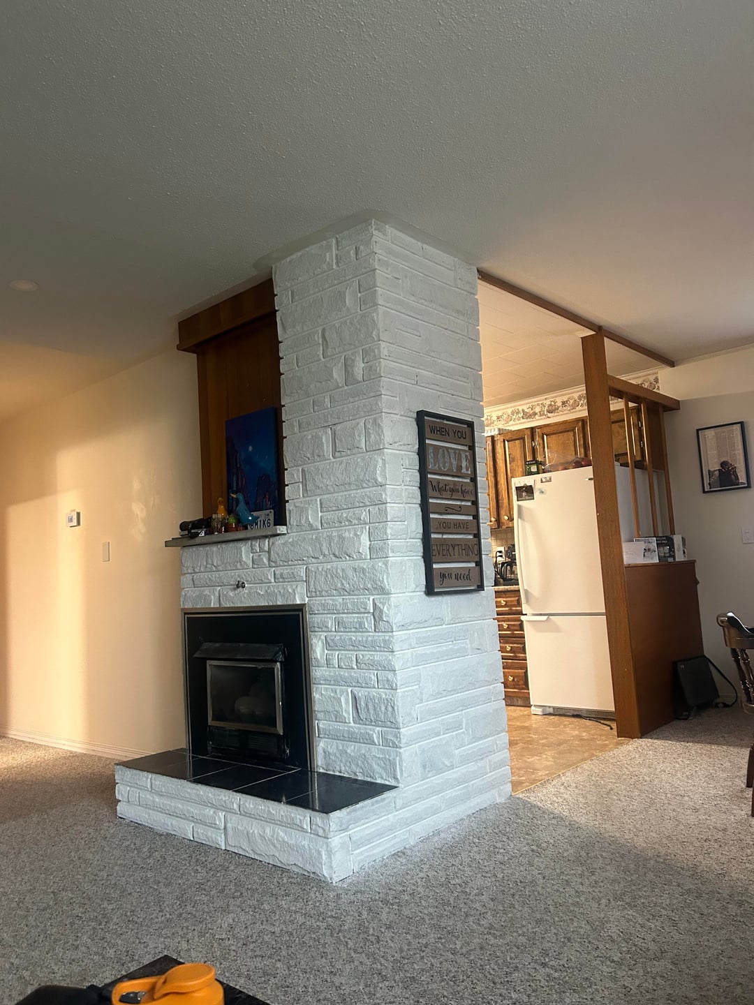 Big fireplace in the centre of my house you can see it from the back in the kitchen and it's face front as soon as you come into my house. The brick before had like weird yellow bricks in it that were kind of offputting so I figured I'd limewash the fireplace, but I don't know looking back now. I feel like when I put in flooring, probably a darker vinyl flooring, the old brick would've looked just fine. Its jut very white like I tried stressing it but clearly I didn't stress it enough I do plan on replacing the wood trim stuff with something more modern down the road but curious what you guys think. Before and after and a picture of the living room for "context"
