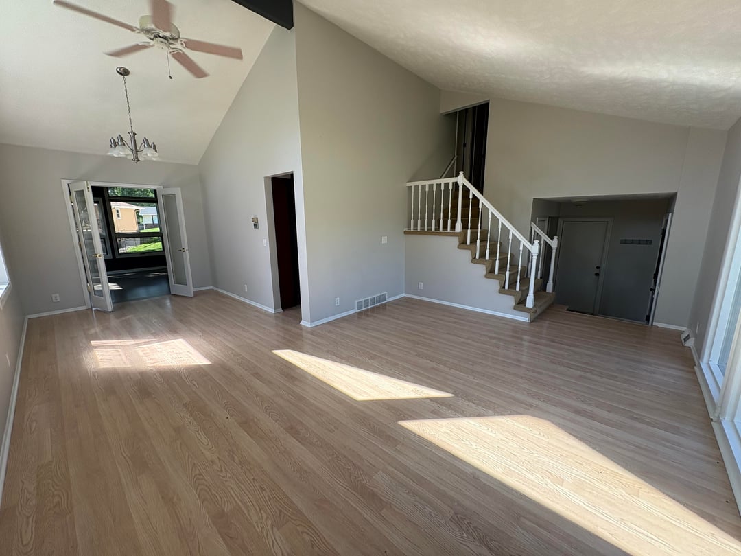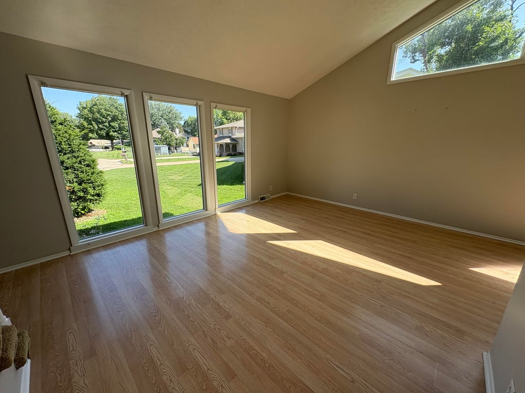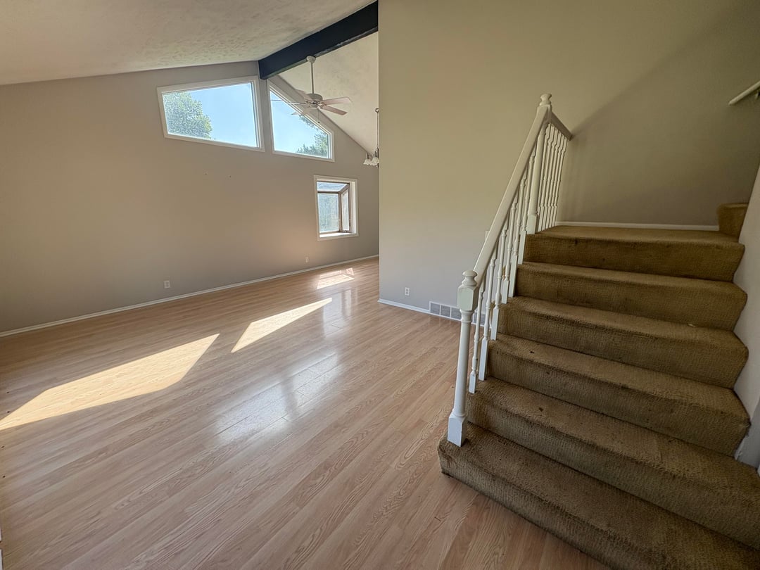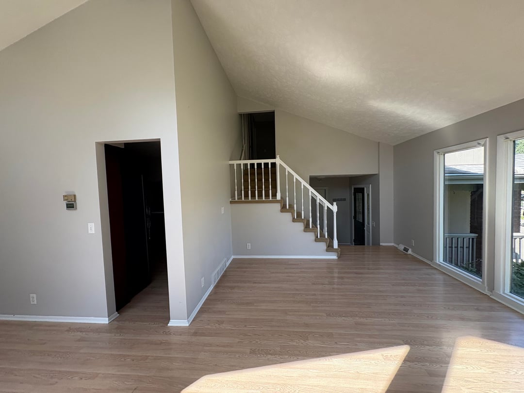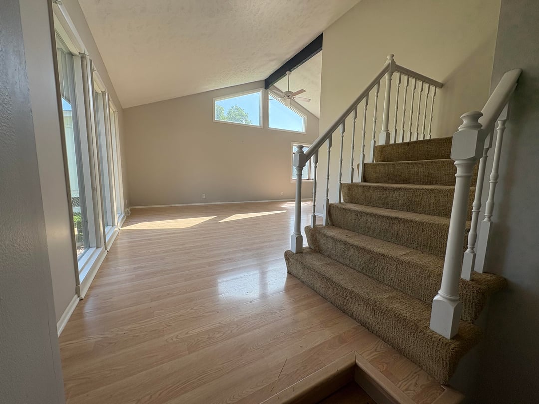 We are having trouble figuring out furniture for this room. Our desire is to have some form of couch/loveseat/sectional/chair combination to create a functional seating/conversation space that doesn’t block the front windows or close off the flow path from the front door to the sunroom and kitchen. We have a large aquarium (approximately 3 feet wide, 2 feet deep, and 5 feet tall) that we were tentatively thinking of having in this room and putting against the wall the stairs go up to, but aren’t tied to that location or even definitely having it in this room. At some point down the road we are also thinking of adding another window on the exterior walls with the high windows. Any ideas for what types and arrangements of furniture would work best for this room? Thanks!