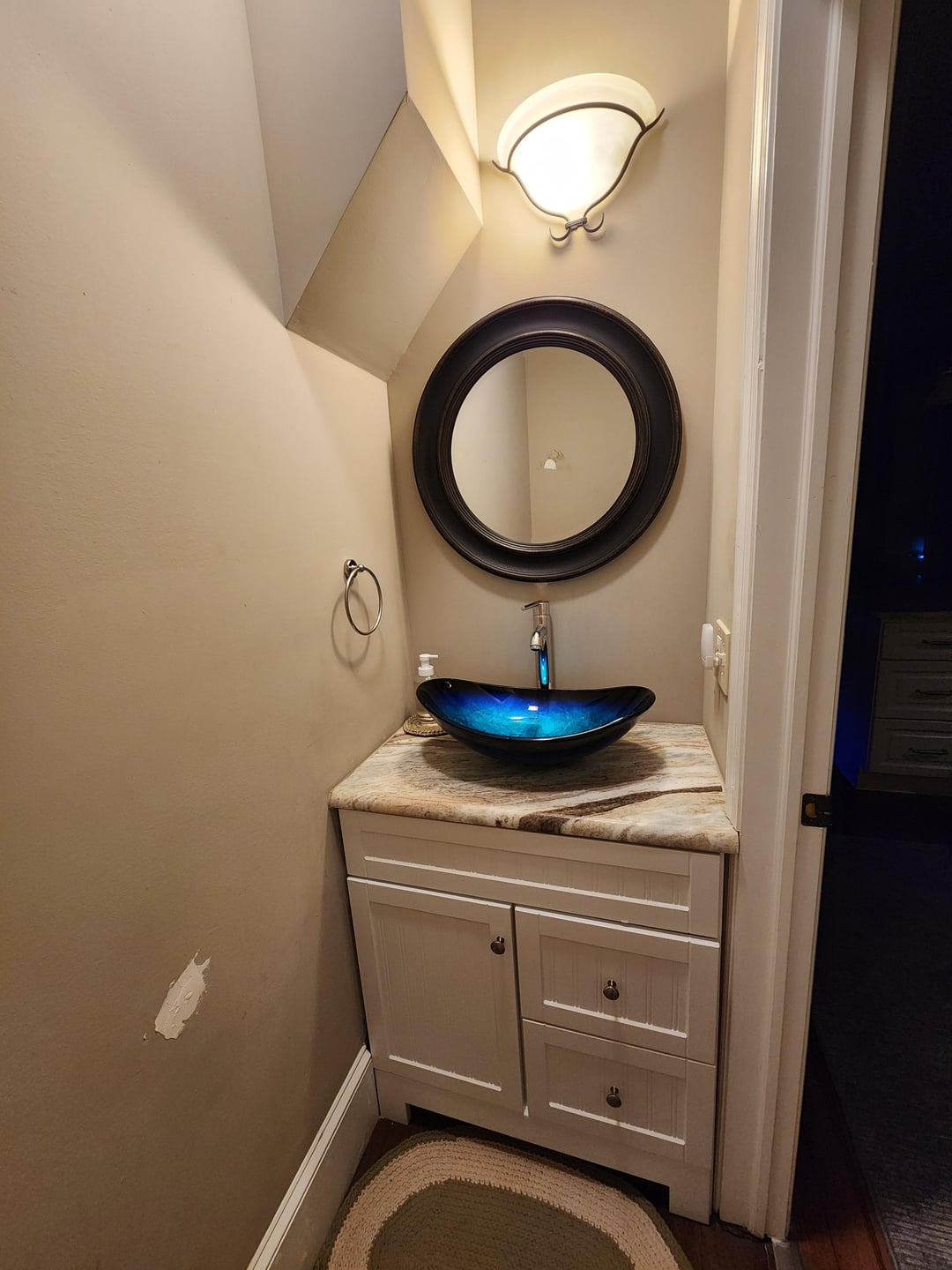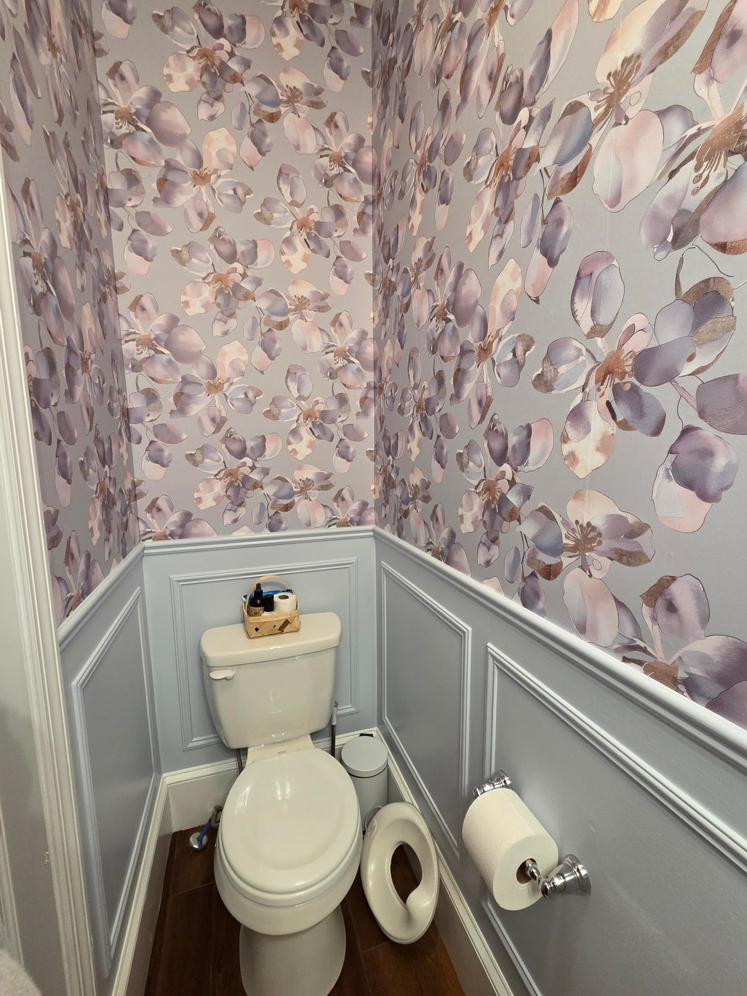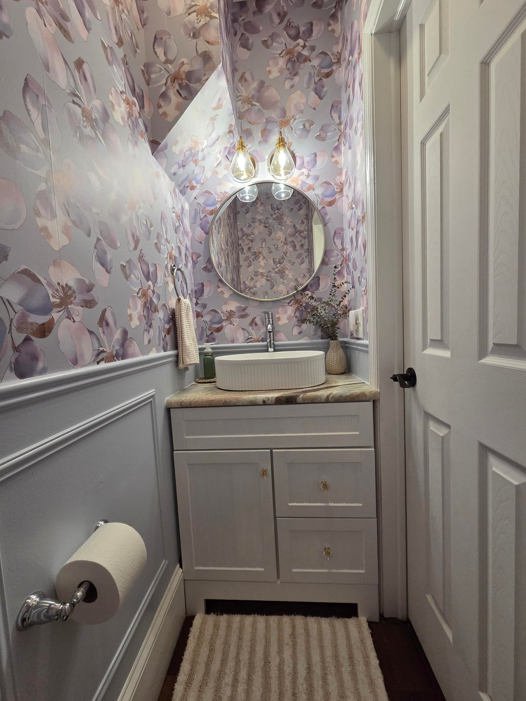 Hi all, looking for some advice about my powder room revamp. I did this myself. I was going for a very feminine, floral with a touch of glam look.