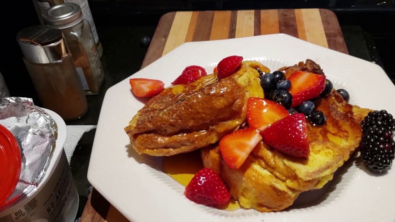 Ingredients. Brioche Bread 4 Eggs 1 Tablespoon Vanilla 1 Teaspoon Almond Extract Cinnamon Butter Fresh Berries Maple SyrupOptional Cream Cheese 1/2 squeeze lemon deliciouseasyFranceFrenchFrench recipesfrench toastQuickRecipeStuff Cream cheese French toastToastVideoVlogYouTube