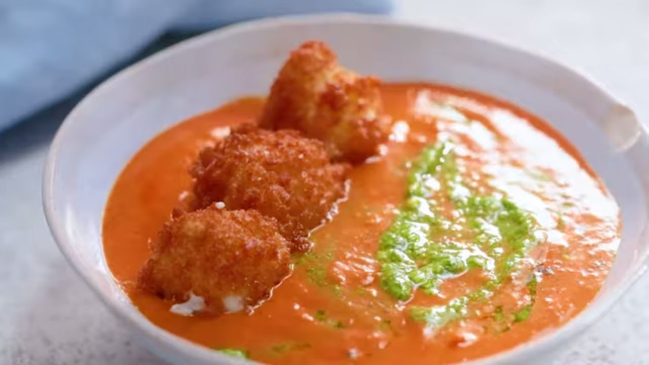 2. Creamy Tomato Soup with Mozza-ball Skewers: