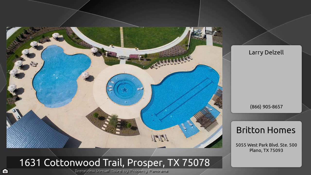 The Virtual Tour for the property at 1631 Cottonwood Trail, Prosper, TX 75078 listed for $749,900: Other homes for sale by Larry Delzell of Britton Homes: BRITTON HOMES NEW CONSTRUCTION! Extended entry welcomes with 20-foot ceiling. Hardwood floors through out. Library with French doors. First floor private guest suite. Formal dining. Hardwood staircase. Family room with cast stone fireplace. Kitchen features double ovens, gas range, lots of counter space, a large island with built-in seating space, pantry and butler's pantry. Secluded master suite with a wall of windows. Double door entry …