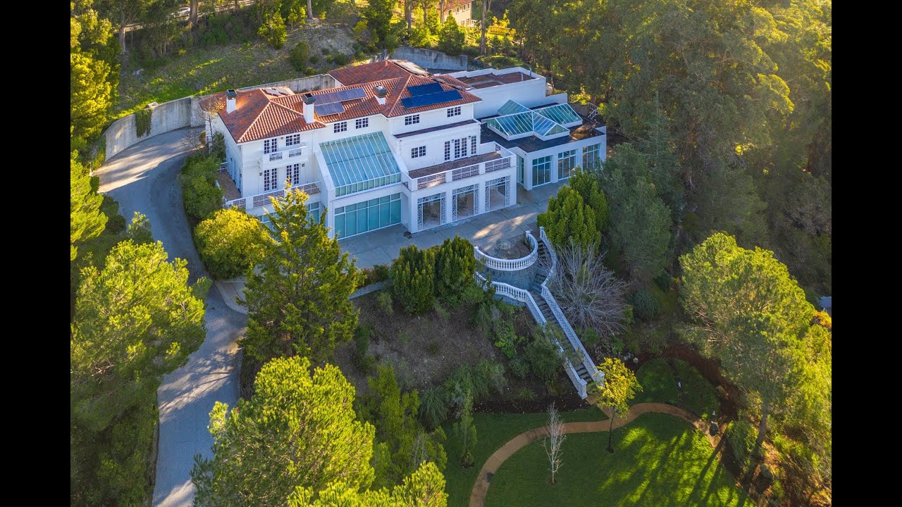 Perched high above on nearly two acres of beautiful grounds at the end of a quiet cul-de-sac, this gated, Mediterranean, contemporary estate overlooks the hills and valleys of the sought-after Carolands neighborhood of Hillsborough.